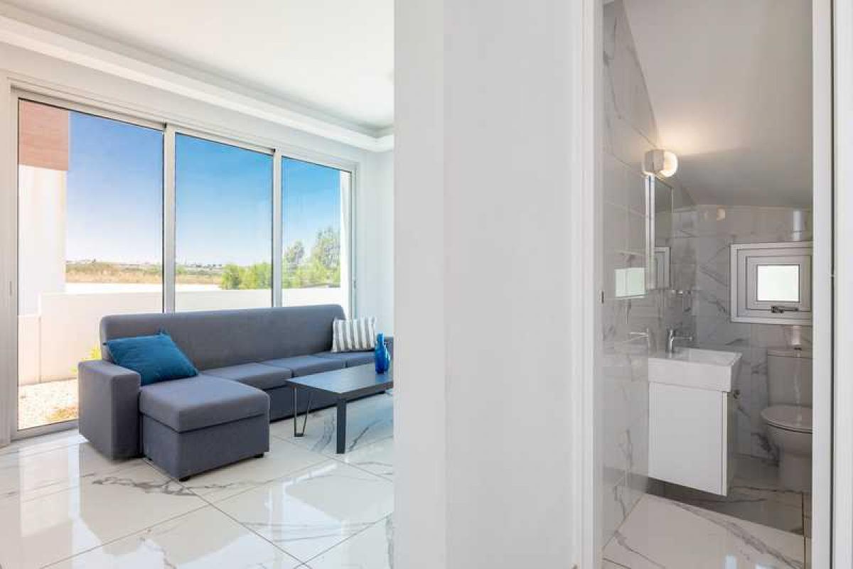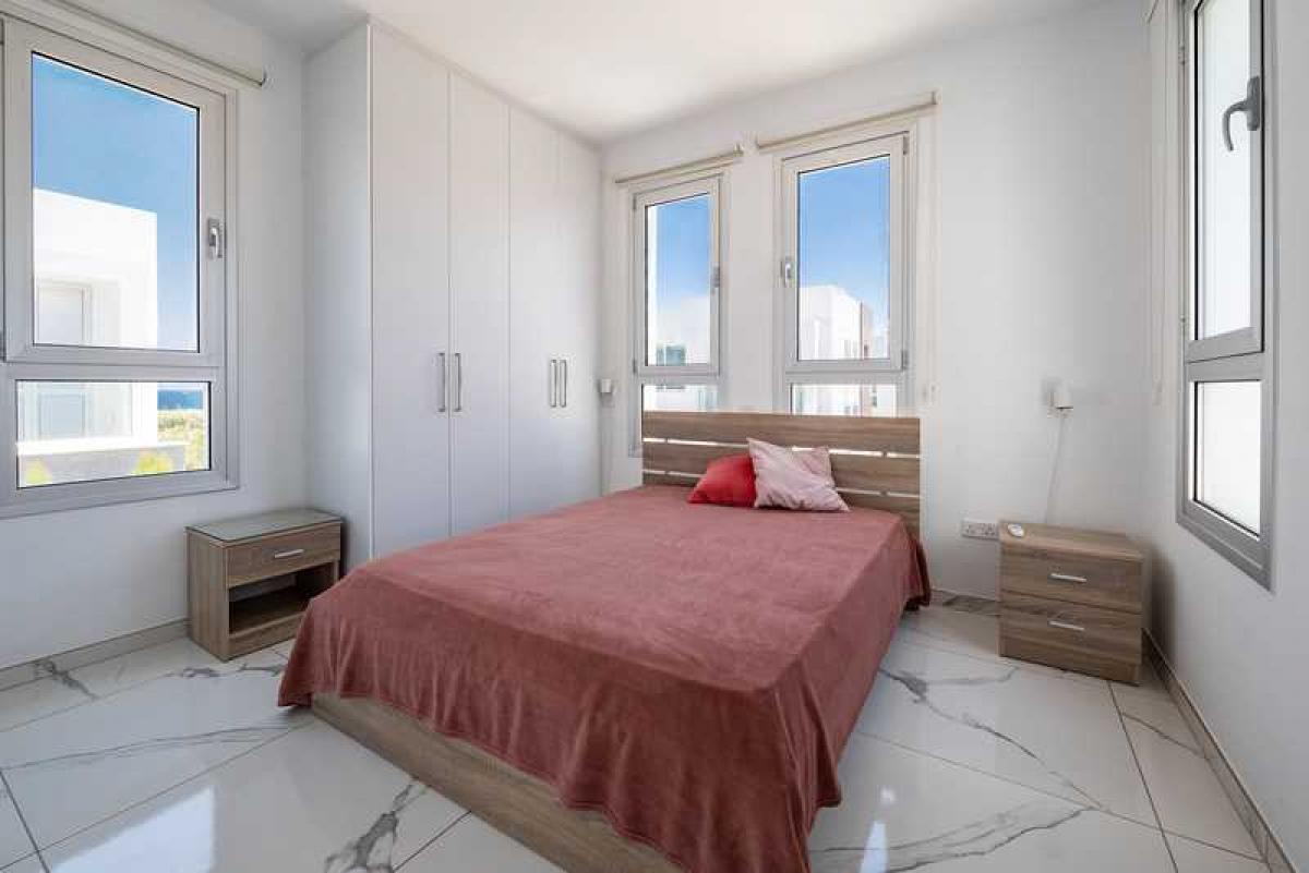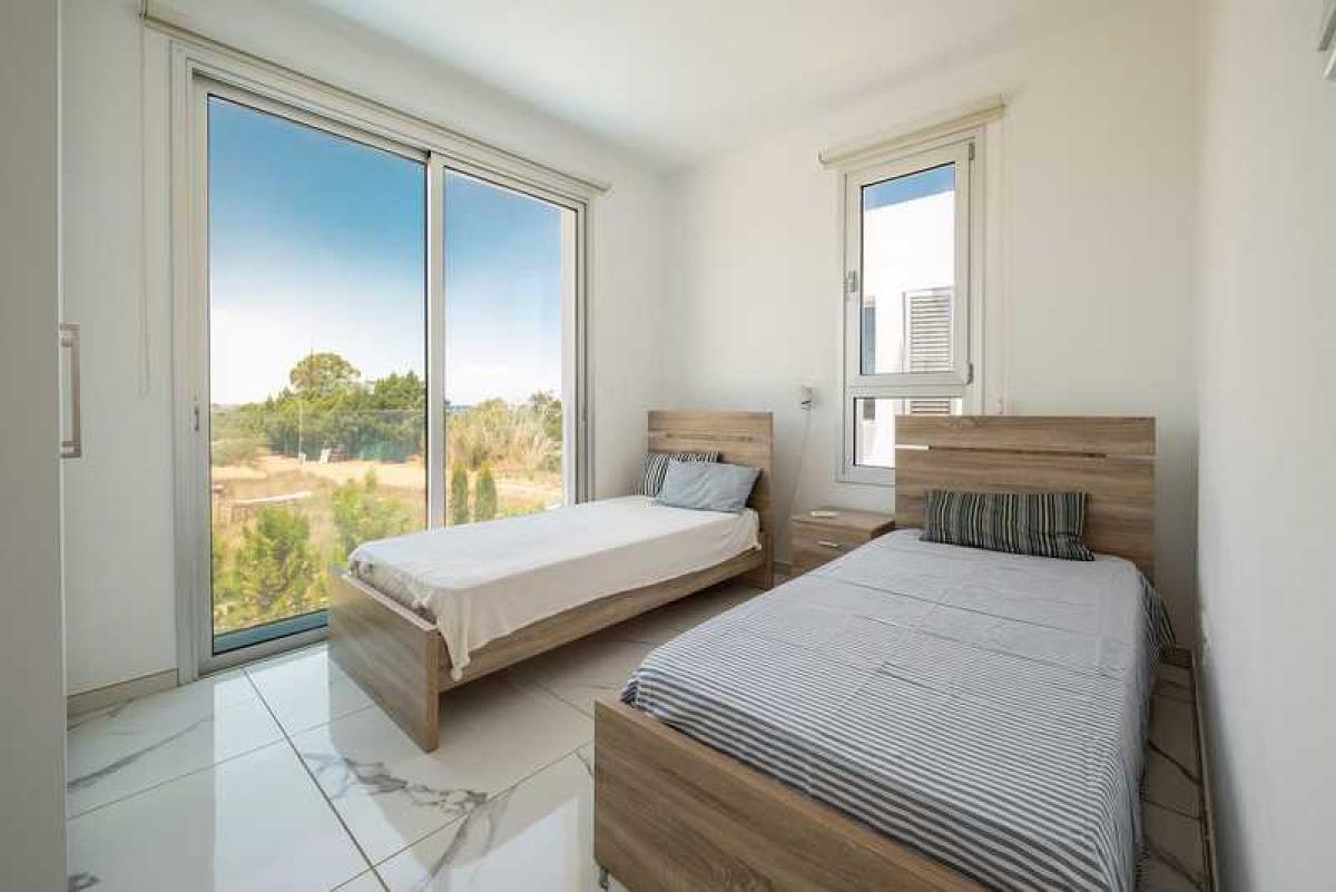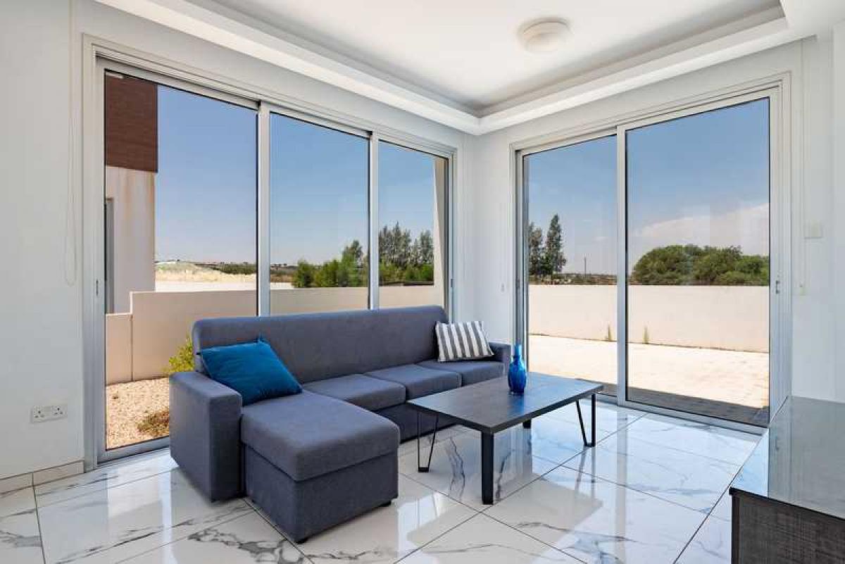 The villa is a part of an amazing gated complex of 19 modern villas. It is located in Kapparis - one of the most popular tourist destinations of Famagusta area in the East of Cyprus. The clear blue waters of the Mediterranean await you!The cozy 3 bedroom villa with private swimming pool and garden offers relaxing and tranquil time with family or friends. Modern design and comfort of open plan ground floor with kitchen, dining area and living room allow enjoying time. The living area has 2 coaches, a coffee table and tv stand while the dining area features a dining table and chairs. The modern kitchen is equipped with all the appliances: fridge, dishwashing machine, oven, electrical hob and hood, washing machine etc, and will be a joy to cook in. There is a guest toilet on the ground floor. The three furnished cozy bedrooms are tucked away on the first floor: master bedroom with en-suite, two bedrooms and one family bathroom.