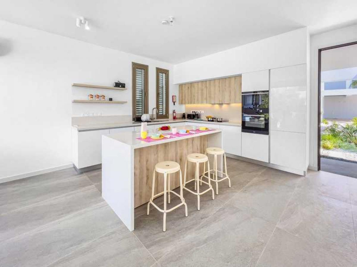 Inside this holiday home is bright and airy, fully air-conditioned, with an open plan living dining area with a fully equipped kitchen, a breakfast island and with everything you will need for your holiday break.
