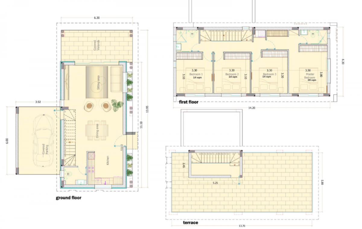A four-bedroom villa for sale in a complex of 5 villas in Kapparis, Famagusta. These 5 properties are custom designed, have 4 bedrooms, covered parking and roof gardens so you can enjoy the spectacular views. In addition, there is a private pool for your relaxation. Features: 3 double bedrooms with fitted wardrobes. Open plan living room, dining room and kitchen. Family bathroom. Guest toilet. Thermal insulation. Double glazing. Private infinity pool. Hot and cold showers by the pool. Barbecue area by the pool. Roof terrace. Additional basement. Garden. Covered parking. A view of mine. Direct access to the beach. Walking distance to local amenities. Energy efficiency A.Reference number: 107673