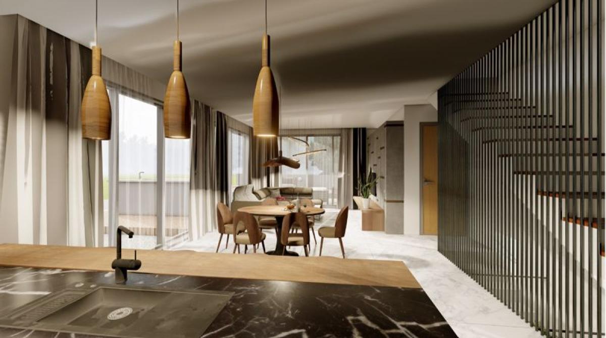 - Open plan living, dining and kitchen area