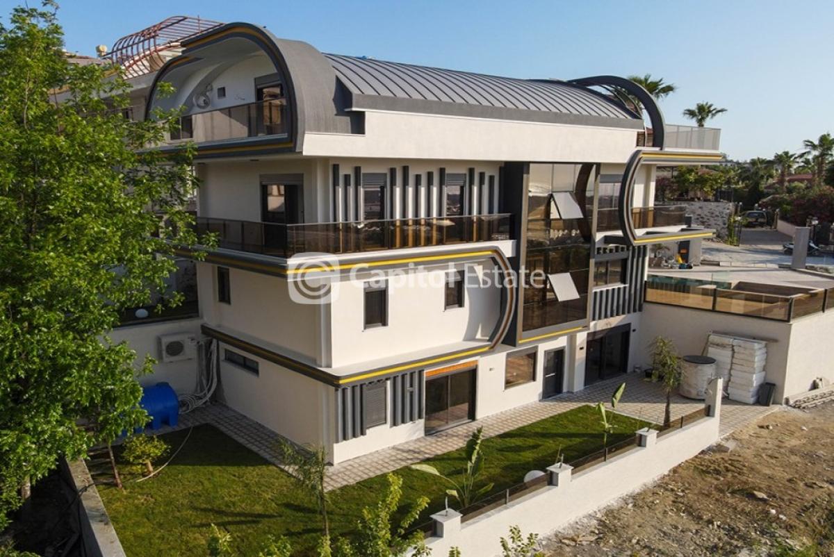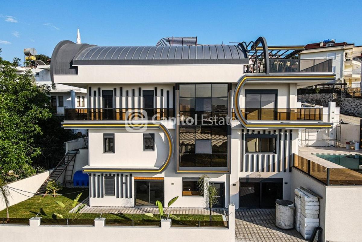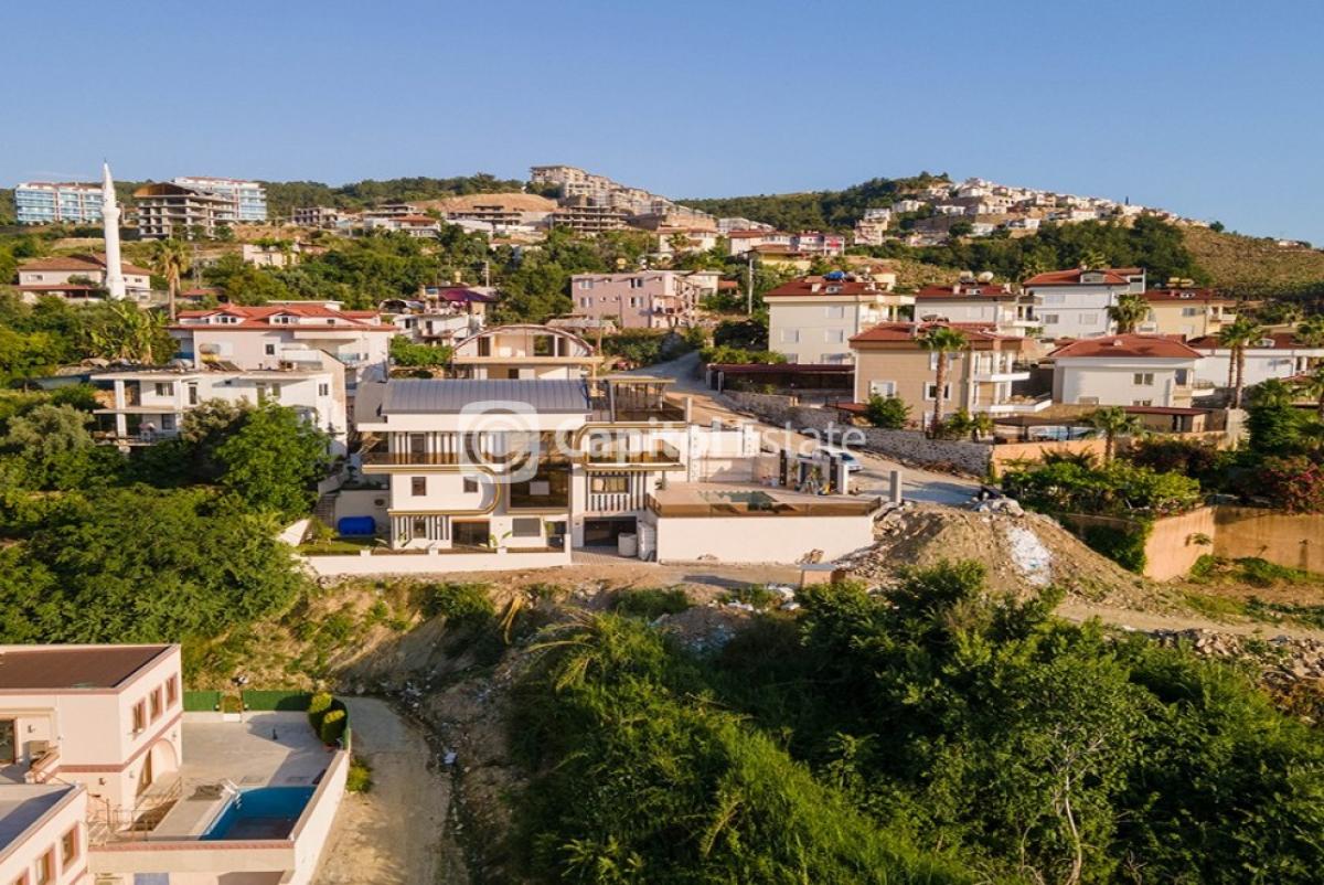 A luxury 5-bedroom villa for sale. It is designed in a modern style and has high-end fine finishing, a private outdoor pool and a sauna. The villa is located in Kargicak 1500m from the beach and has a picturesque mountain and sea view. Kargicak is 15km from downtown Alanya. This peaceful neighbourhood is known for its pristine nature with beautiful clean beaches and hills covered with pine forests.* REF NR: 02468