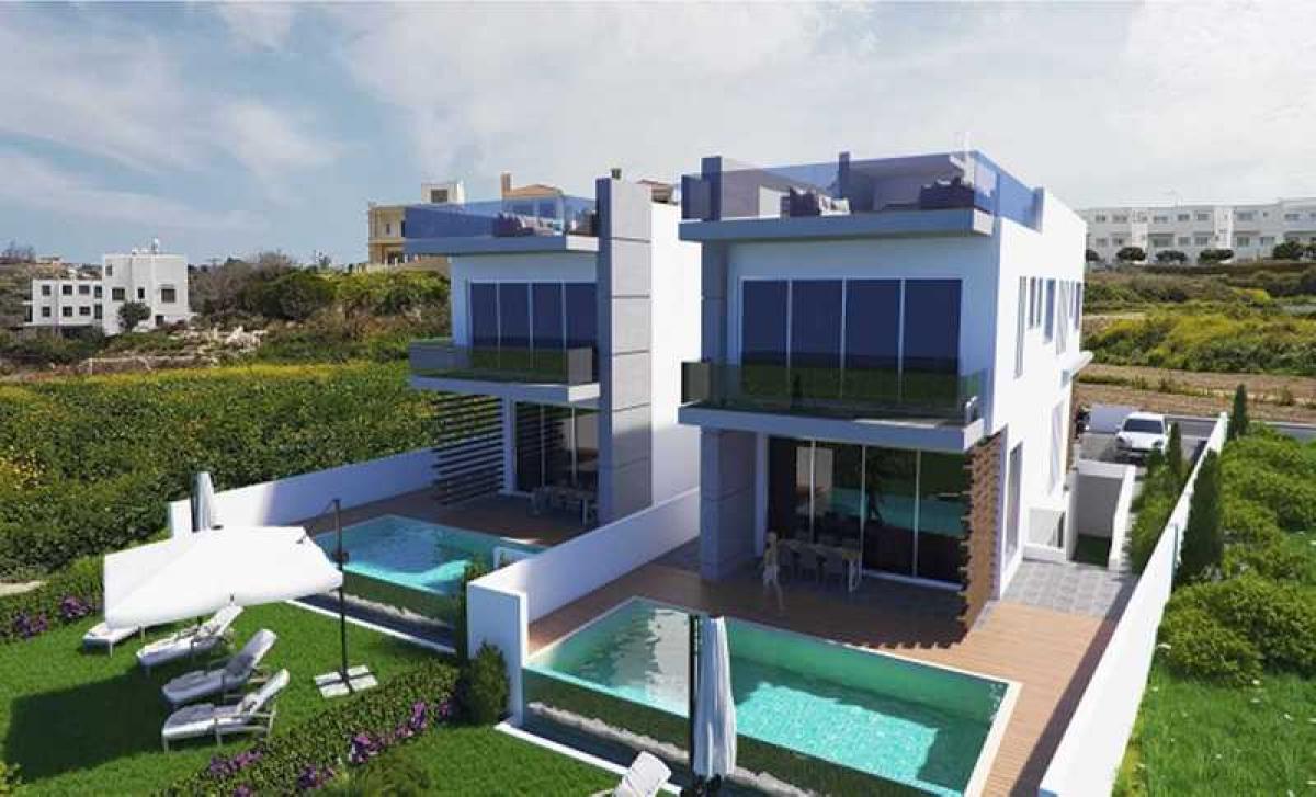 This magnificent beach front luxury villa might be just what you've been dreaming of. There are not many seafront plots available so such properties will always be in high demand and have excellent investment potential. The location is truly amazing as it is within just a few minutes drive to Pafos and its shopping centres, banks, supermarkets, schools, hospitals etc, let alone the amenities of Kissonerga village itself, including shops, restaurants, hotels etcThe villa sits on a generous plot of 745 sq.m. and features 4 or 5 bedrooms on 360 sq.m. covered area. Inside it is spacious and airy, stylish and comfortable, inspiring and cozy. Outside a private infinity swimming pool is inviting to take a refreshing plunge, if you don't fancy going to a sandy beach at your doorstep. Outdoor areas are indispensable in Cyprus and form part of the Mediterranean lifestyle, which implies spending outdoors as much time as indoors, if not more. So why not take advantage of the unobstructed stunning sea views and fresh breeze and relax on the roof terrace or in the garden BBQ area. Energy efficiency A