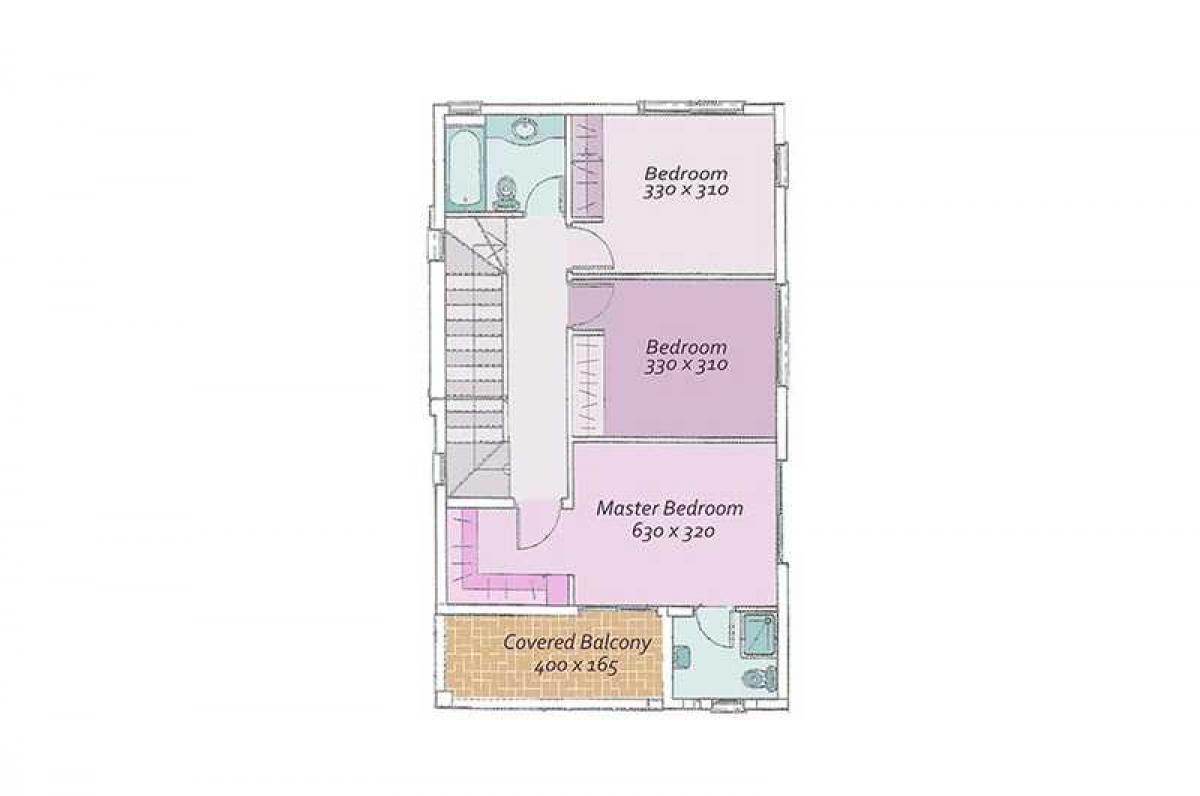 Midway the living area, a discreetly screened area features stairs to the first floor and the bedrooms area. Here you have a master bedroom with a shower en-suite bathroom, attractive arranged 'walk-in' wardrobe and very own private covered balcony. Two additional bedrooms share a colourful full family bathroom.