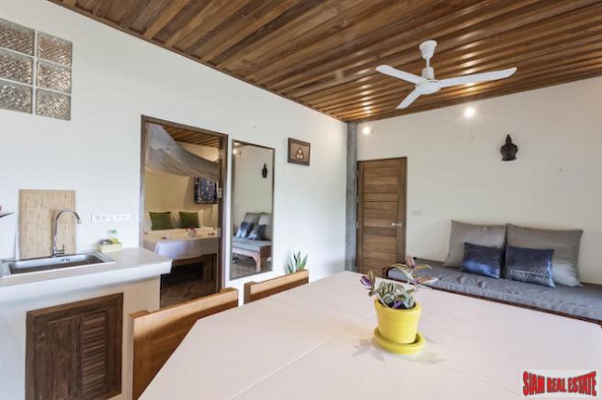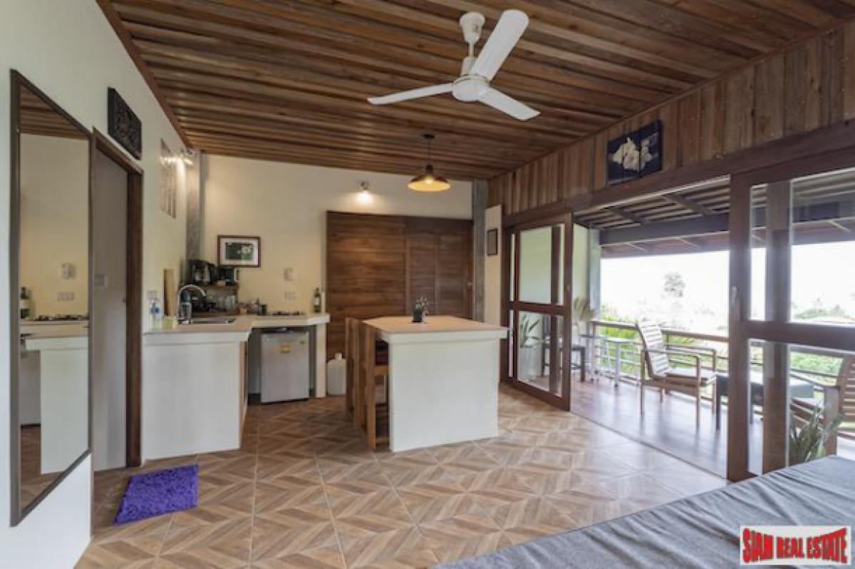 Two sea view houses for sale on Ko Yao Noi, in Southern Thailand. One is a two bedroom, two bathroom villa that sits on a rai on the peaceful island of Ko Yao Noi. The newer house has two separate apartments, both are 5 meters by 10 meters large. The two houses are about four meters apart. Spectacular sea views from each unit viewing well over 20 islands in Phang Nga Bay.There are two separate buildings on a one rai overlooking Cape Kudu Resort. One building houses two separate sea view apartments and other building is a sea view house. They are being sold together and can be rented as three separate rentals. The two leases of land in front of this land have limitations on how high they can build. The owner of the land in front is not able to build over 8 meters tall while the owner of this property being sold has the right to cut any trees that grow into the view.