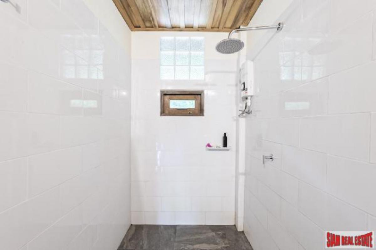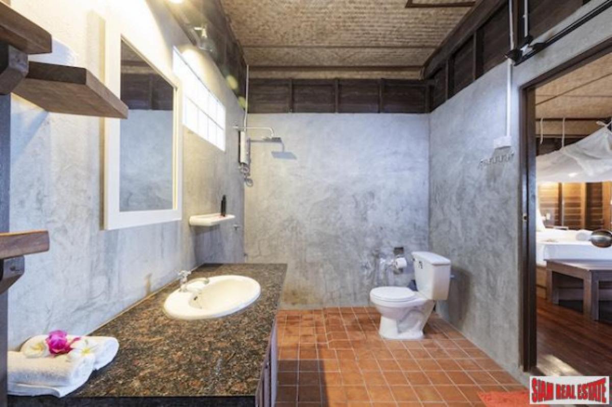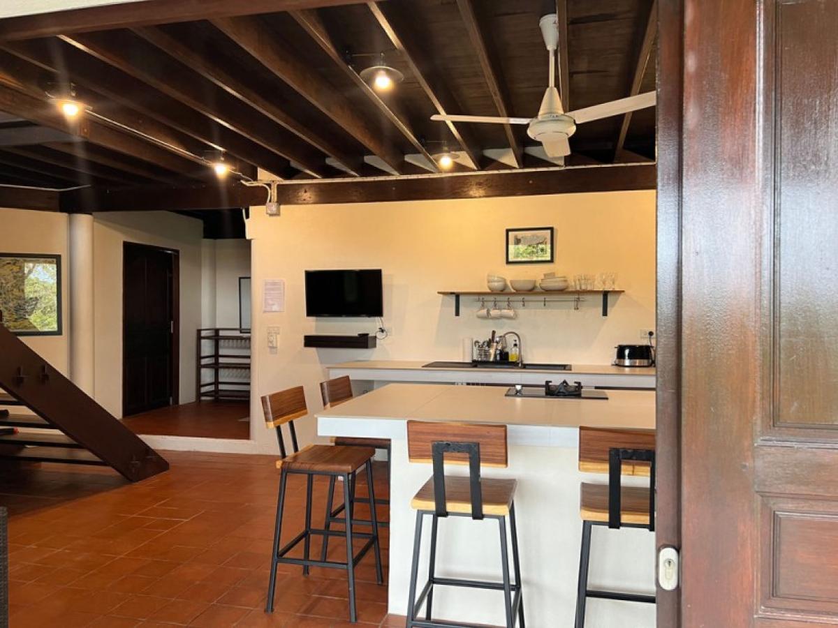 The larger house includes a full sized American kitchen and an extra-large deck and outside patio with open floor plan. It features quality construction of an upper frame with Tang wood and lower level with cement with teak doors and windows throughout.