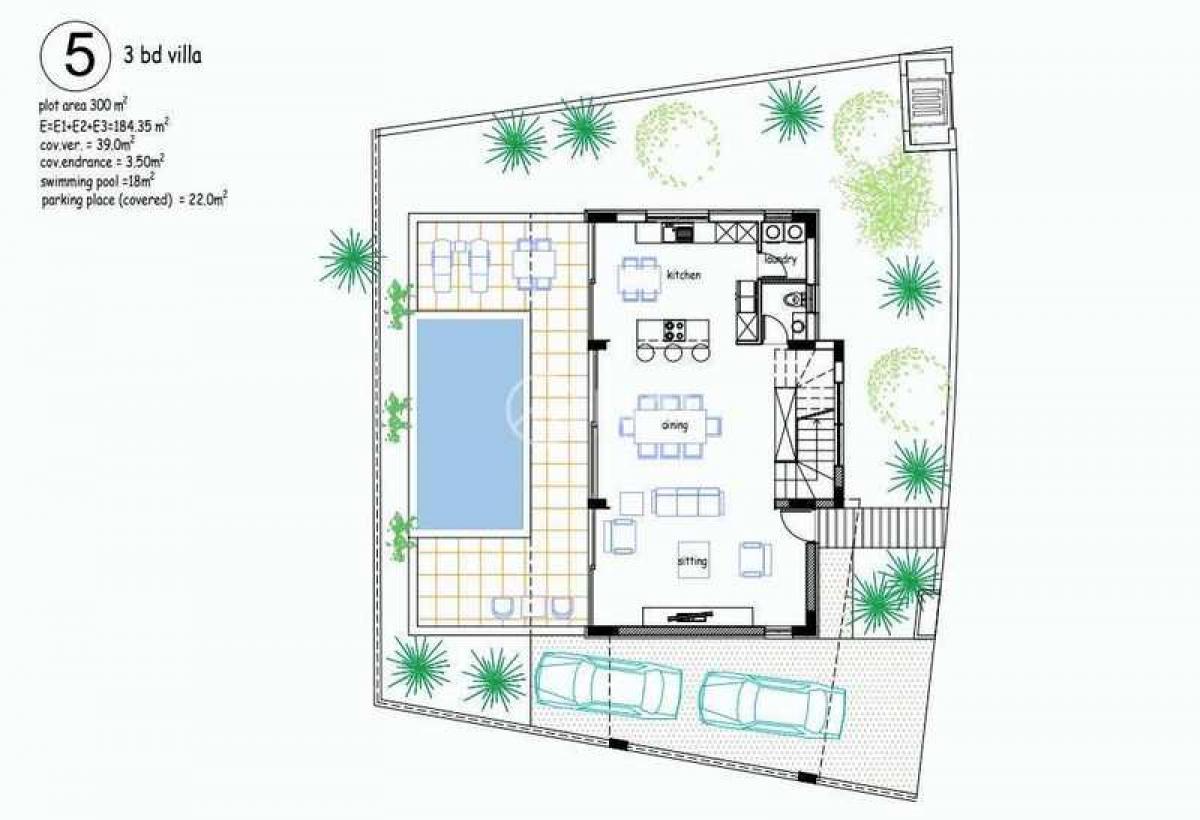 This three bedroom villa has an internal covered area of 184m2 and a covered veranda of 39m2. On the outside the residents can enjoy a swimming pool of 18m2.