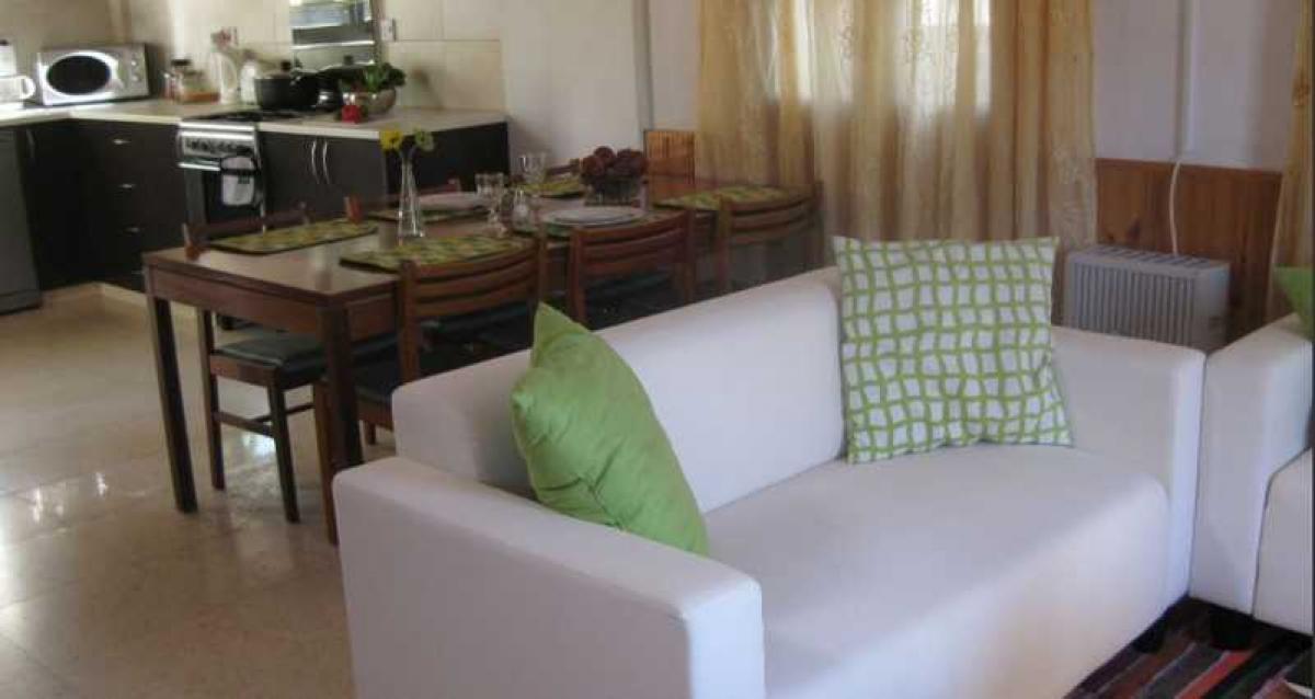 On the ground floor, there is a bathroom, along with the living room area with open plan kitchen, both leading to separate verandas. An inner wooden stair leads to the upper floor consisting of a bathroom and three bedrooms, with the main one leading to a covered veranda. Beautiful mountain view as well as sea view of "Polis Chrysochous bay."