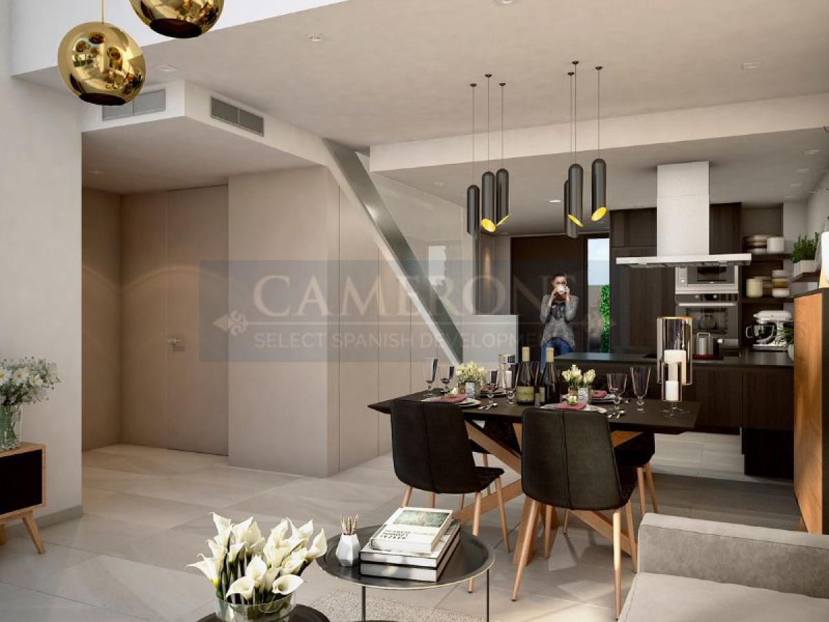New Project of villas in La Finca Golf, with different models to choose. Leros semi detached villa is one of the 3 bed options with 2 bathrooms on generous plot sizes from varying from 210m2 to 360m2 m2.On the ground floor there are 2 bedrooms and 1 bathroom and a big master suite bedroom upstairs with access to a nice terrace with great views. The villa includes an open plan lounge and kitchen, with a dining area. The double windows in the lounge open onto a terrace and pool area. These villas bring the focus on the use of long-lasting materials and the highest quality finish. All villas include AACC, underfloor heating in the bathrooms and a private pool.La Finca Golf is an exclusive residential area of Algorfa. The internationally renowned resort has a magnificent Club House, as well as a commercial centre with pharmacy, shops and restaurants, and a 5 star Hotel and Spa. The beautiful sand beaches of Guardamar are only 15 minutes away by car. The area is well connected with the main cities, Alicante, Torrevieja and Orihuela Coast.
