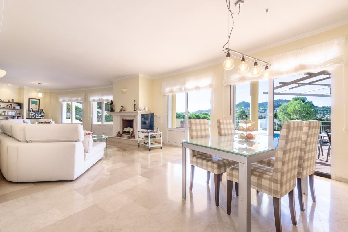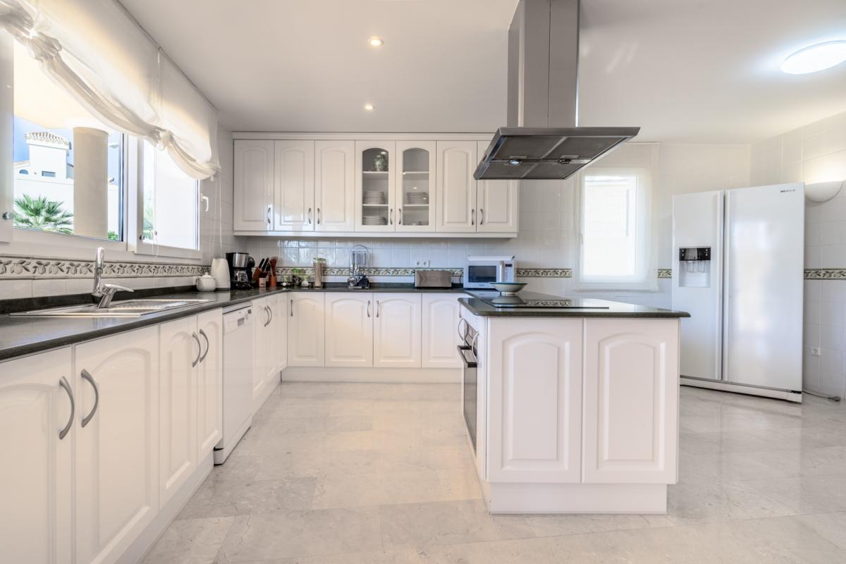The outdoor areas offer ample space to enjoy the Mediterranean climate, all year long, with an average temperature of 21 degrees and over 320 days of sunshine per year. The large plot enjoys a private pool, paved terrace, Mediterranean trees and plants, and artificial grass.