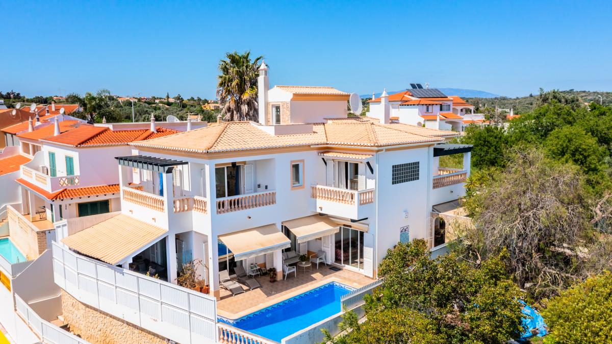 Located in the peaceful village of Sargacal, just a 5-minute drive from the vibrant town of Lagos, this beautifully maintained 4-bedroom villa offers the perfect blend of modern comfort and countryside charm.A stone-paved driveway leads you to the front entrance, where you step into a welcoming hallway that flows into a bright and spacious living room. Complete with a fireplace and large sliding doors, the living space opens directly onto the pool and a charming covered terrace—ideal for relaxing or entertaining.