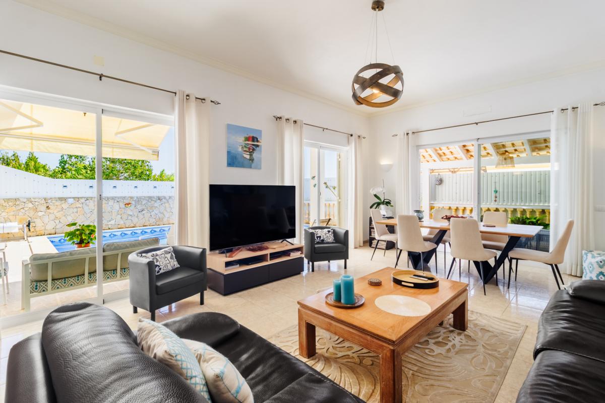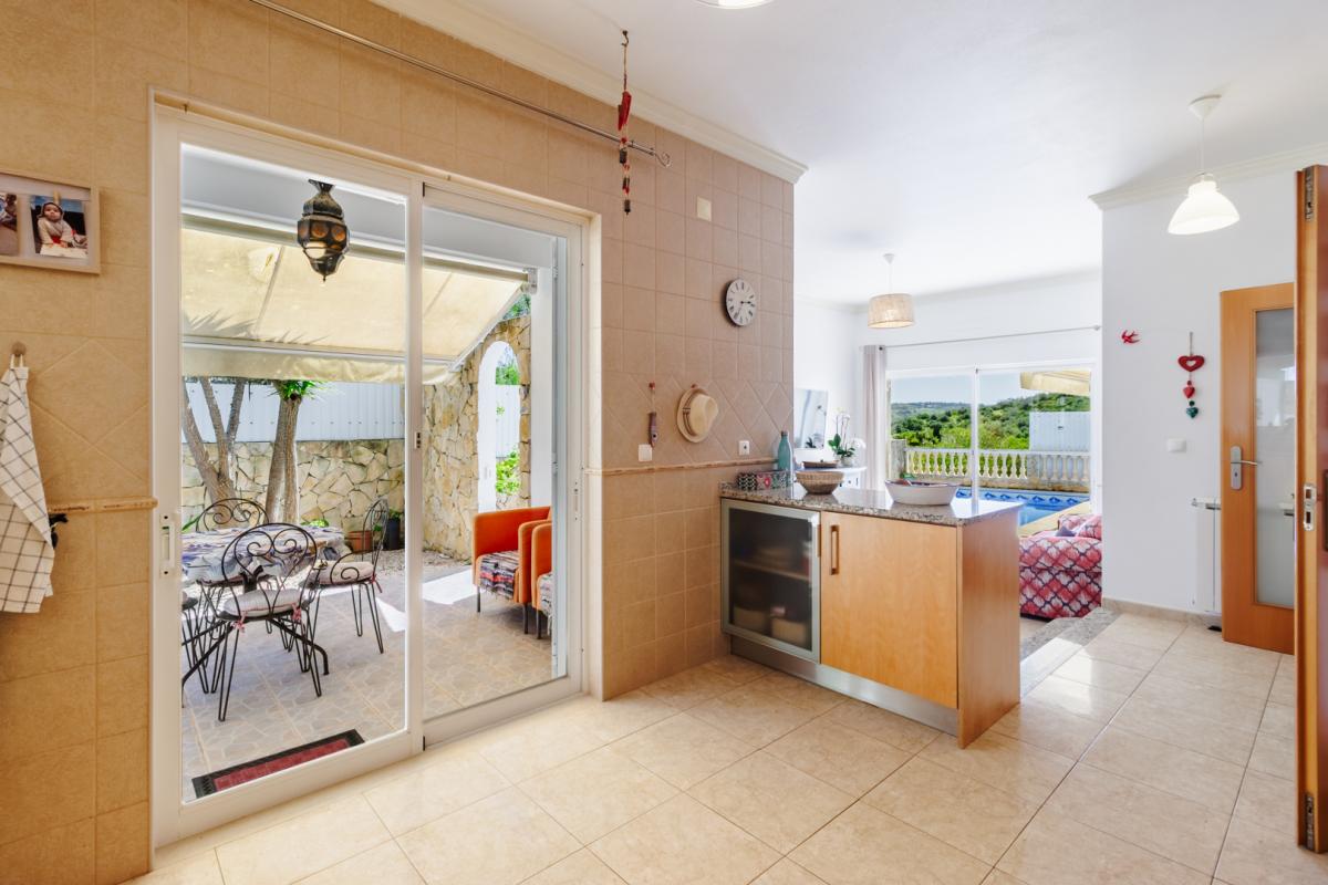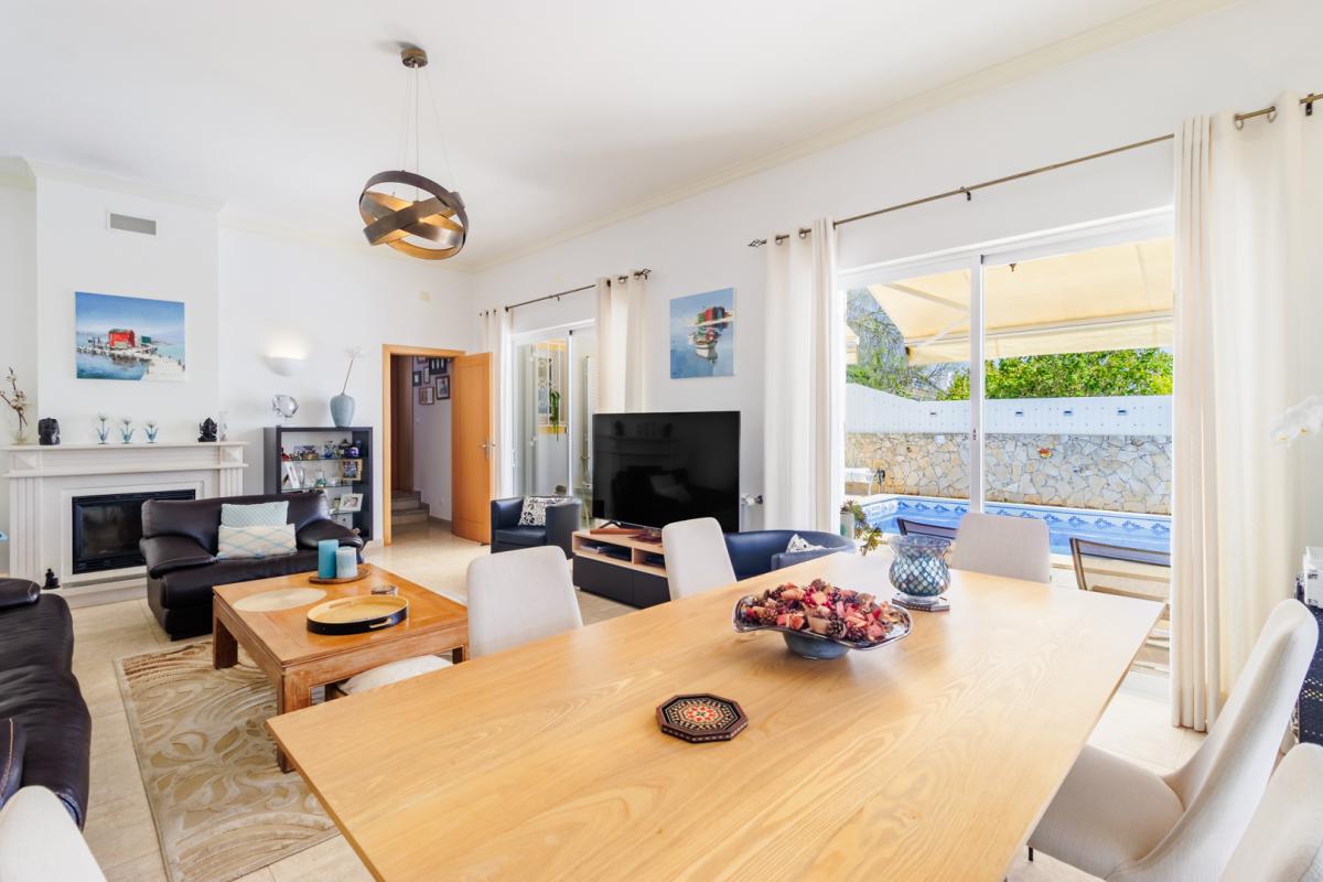Located in the peaceful village of Sargacal, just a 5-minute drive from the vibrant town of Lagos, this beautifully maintained 4-bedroom villa offers the perfect blend of modern comfort and countryside charm.A stone-paved driveway leads you to the front entrance, where you step into a welcoming hallway that flows into a bright and spacious living room. Complete with a fireplace and large sliding doors, the living space opens directly onto the pool and a charming covered terrace—ideal for relaxing or entertaining.