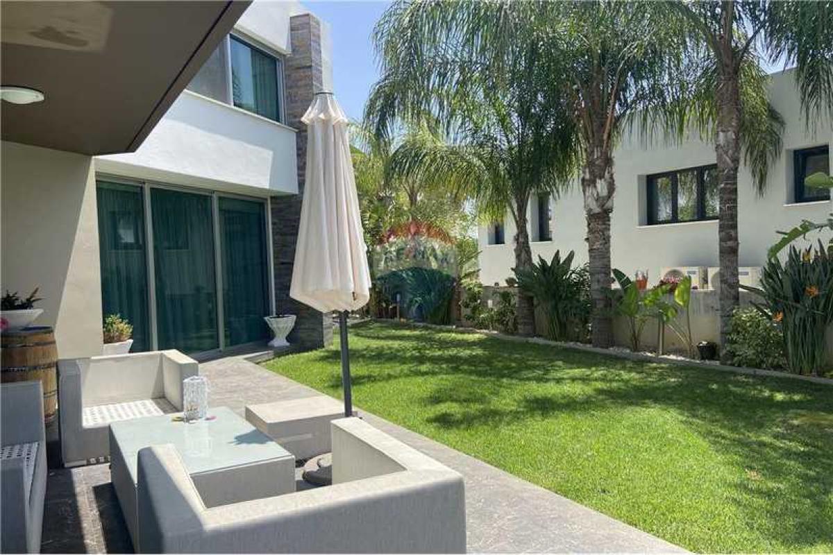 Ένας όμορφος κήπος με μεγάλη πισίνα, προσφέρει την ευελιξία στον υποψήφιο αγοραστή να απολαύσει όμορφες στιγμές με την οικογένεια ή και φίλους. Επιπλέον, υπάρχουν 2 στεγασμένοι χώροι στάθμευσης.