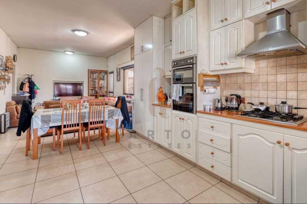 The house consists of the ground floor with a very spacious living room, guest toilet and a separate kitchen with dinning area, veranda with bbq area and a small guest house of 30m2. The second floor consists out of a family bathroom and five bedrooms of which the master bedroom with en-suite facilities. From the second floor there are stairs that leads you to the roof where you can built another floor.The house has a small back yard, private parking for two cars.