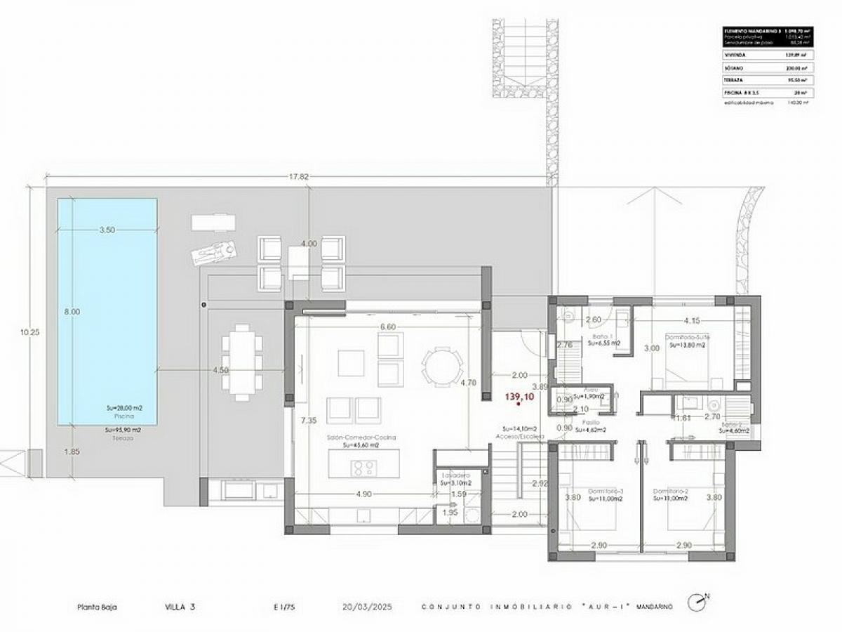 Included in the price: all white goods, electric shutters in the bedrooms, floor heating in the bathrooms, airconditioning installed, interior and exterior lighting, private pool.