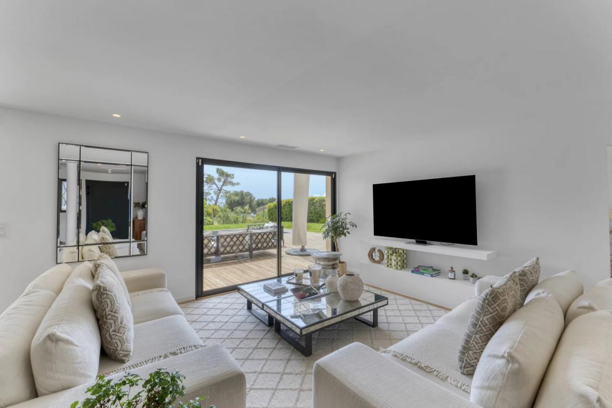 ideally located on the heights of Le Cannet, in a dominant position and not overlooked, this magnificent contemporary villa of 247 m2 on two levels has been fully renovated to a very high standard, set in landscaped grounds of 1200 m2. The villa boasts uninterrupted sea views from the first floor and terrace.