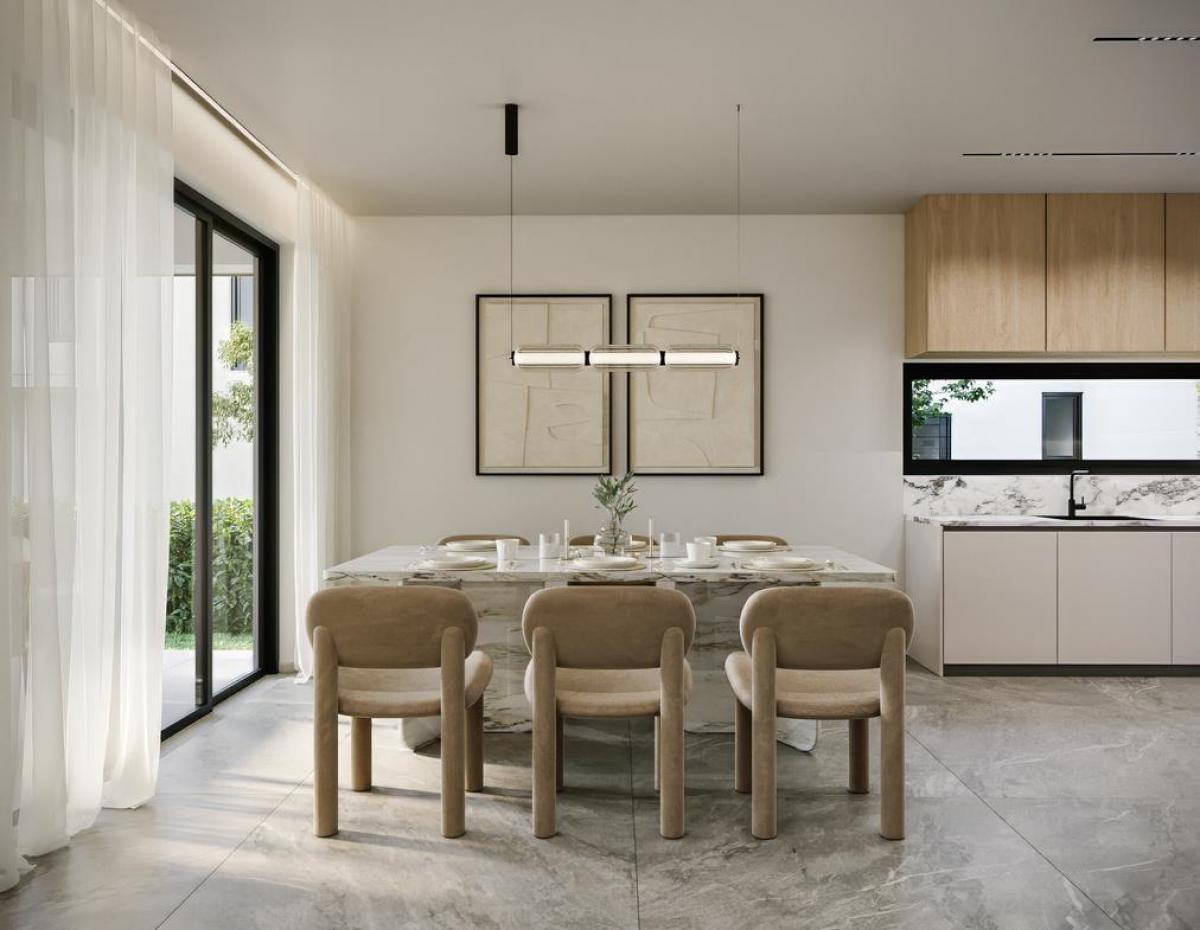 Each villa features four well-appointed bedrooms, designed with comfort and style in mind. The master bedroom boasts a large double bed, ample closet space, and an en-suite bathroom with modern fixtures. The second bedroom also features an en-suite bathroom, providing additional privacy and convenience. The third and fourth bedrooms, equally spacious, can be configured with either double beds or twin beds, making them versatile for guests or family members. Both rooms share a well-equipped family bathroom.