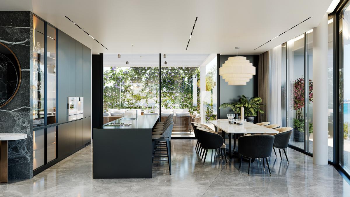 This property is spread over 3 floors and comprises spacious living / dining / kitchen area with extensive verandas, 5 bedrooms, 5 bathrooms + guest WC, including maid's room / guest house, office and roof garden with swimming pool.