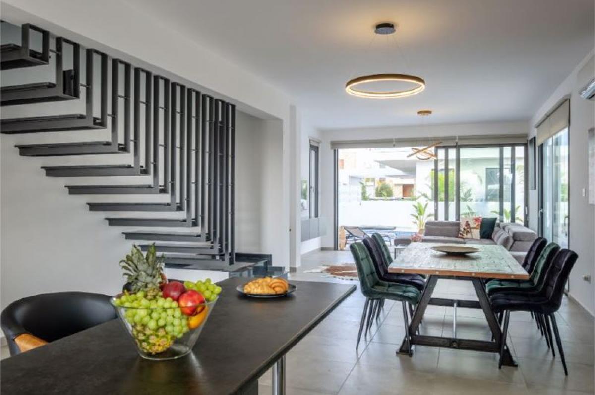 Four Bedroom Detached Villa For Sale in Livadia, Larnaca - Title Deeds (New Build Process)Not more than 5 minutes drive from Larnaca town centre, our residential project is located in an established residential area, 200m from the beach. The project is composed of 75 residential plots, an area which has been identified for high growth potential and future development gains. These Residences come with the option of five designs, internal layouts and external finish. Great luxury options are featured comprising open plan living areas which can be modified to suit the purchases needs, kitchen/dining area, guest toilet, pantry and storage area, master bedroom with en-suite and main bathroom. The project uses a unique combination of glass, stone and timber to appeal to the new home buyer. This new development has the option of private swimming areas. The Villas have private gardens and double parking areas. They are situated within easy access to the highways leading to all major towns.