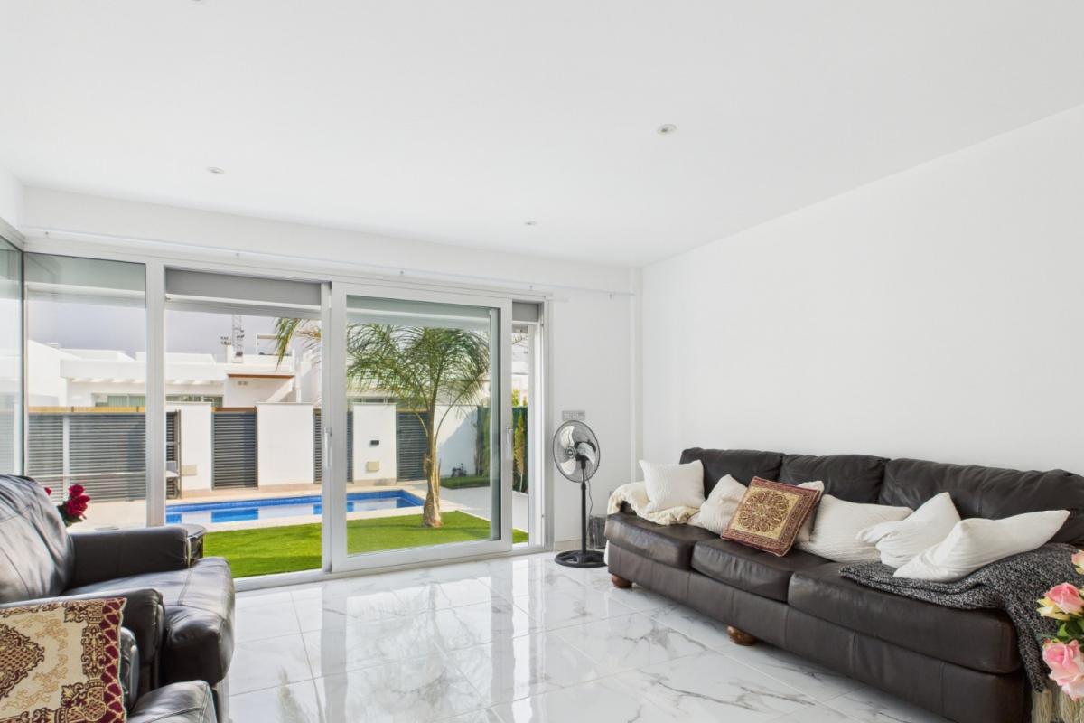 Modern Elegance in Lomas del Rame with Private PoolResale new build in Lomas del Rame, Los Alcazares - a modern home in one of the most sought-after areas where new developments are flourishing.This stylish property offers three bedrooms, two bathrooms and an additional guest WC, designed for both comfort and practicality. Large windows bring in natural light, while the open layout connects seamlessly to the private pool and garden, creating a perfect setting for relaxation and entertaining.The house is sold without furniture, giving the new owners the chance to design the interiors to their own taste and vision. it includes a private parking space and an extra multipurpose room. Originally conceived as a garage, this space is now used as storage but can easily be transformed into a fourth bedroom, a dedicated home office, a personal gym or even a creative studio.Located just a 15-20 minute walk to the beach and only five minutes from shops, restaurants and essential amenities, the home combines modern coastal living with convenience.An exceptional opportunity to own a contemporary residence in one of the most desirable locations of Los Alcazares, perfect as a permanent home, holiday retreat or smart investment.DisclaimerWe endeavour to maintain accurate depictions of properties in Virtual Tours, floor Plans and descriptions, however, these are intended only as a guide and purchasers must satisfy themselves by personal inspection.