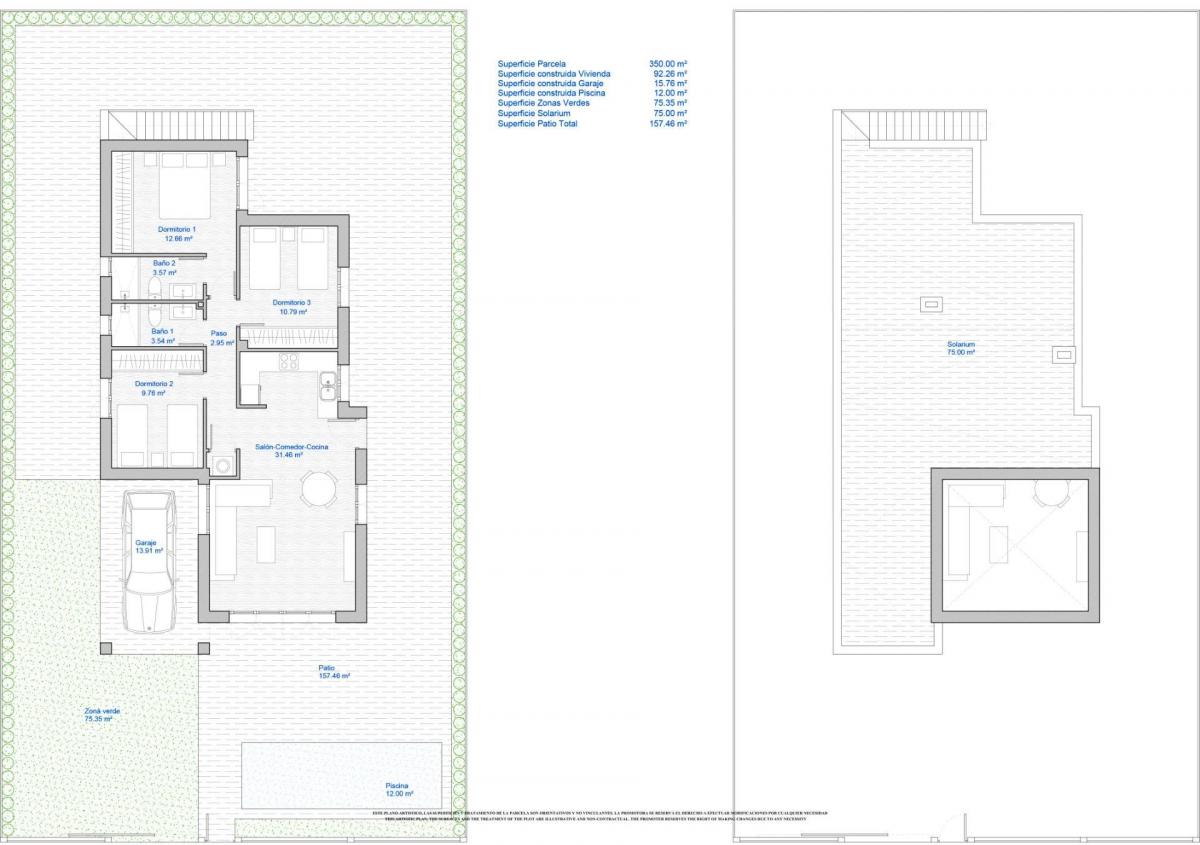 New Build detached villa build on the generous plot of 350m2 in Los Alcazares . villa with three bedrooms and two bathrooms, open-plan kitchen with the lounge area, fitted wardrobes, solarium, private garden with off road parking space and space for a swimming pool. An options for a private pool at an extra cost. Spacious living room has large sliding doors to a terrace. Ample terraces at the front and rear ensure that owners can sunbathe throughout the day. This villas have modern fitted kitchens with a choice of colours for kitchen units and wall tiles in both kitchens and bathrooms and also floors and terraces. Residential of villas located just one kilometre from the beach and the town of Los Alcazares, where you can practice various water sports, surrounded by several golf courses. City of Cartagena less than fifteen minutes by car and thirty minutes from Murcia Corvera airport.