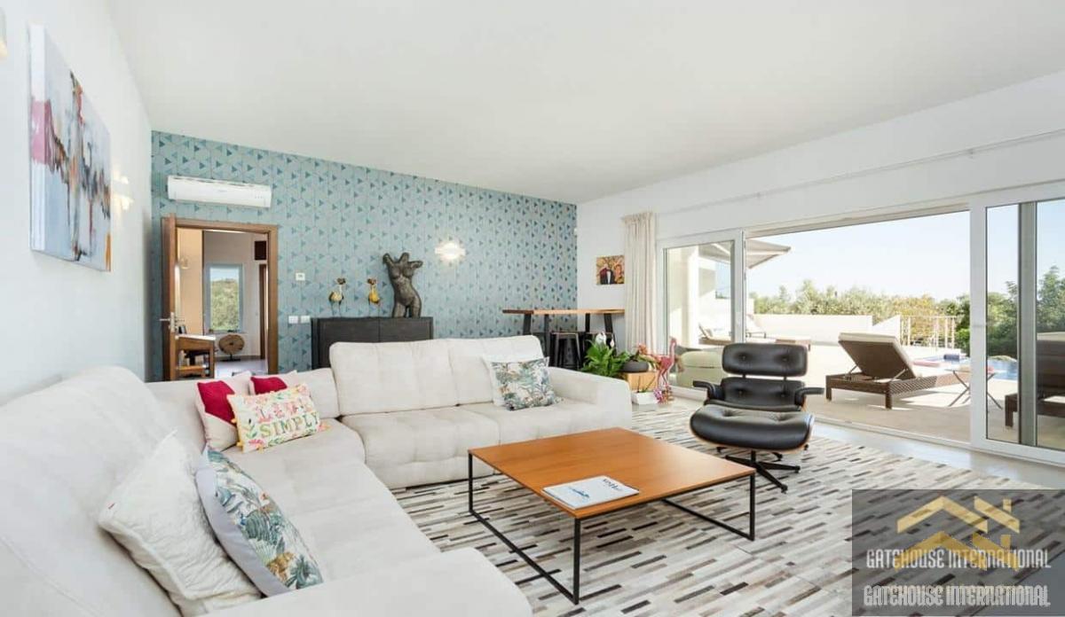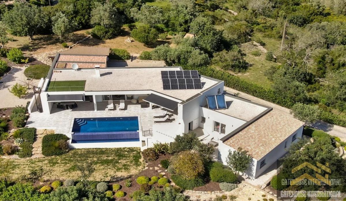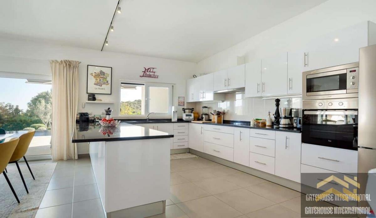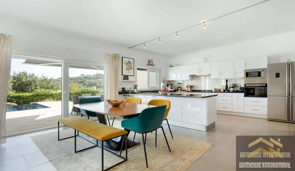 4 Bed Single Storey Villa For Sale in Loule Algarve - a 262m2 detached villa with 4 bedrooms, 4 bathrooms with a heated infinity pool within a plot of 4,690m2 plus a garageThe villa is complete with an entrance hall, an open-plan living and dining room with a fireplace, an open-plan fitted and equipped kitchen, a laundry area, an office, 4 bedrooms, 3 with en-suite plus a visitors bathroom. Outside is a heated infinity swimming pool, terraces, BBQ and Al fresco dining areas, carport, garage, parking spaces and gardens.