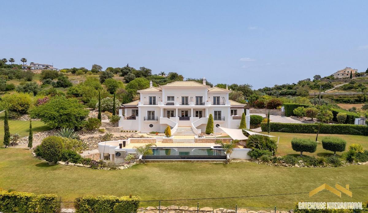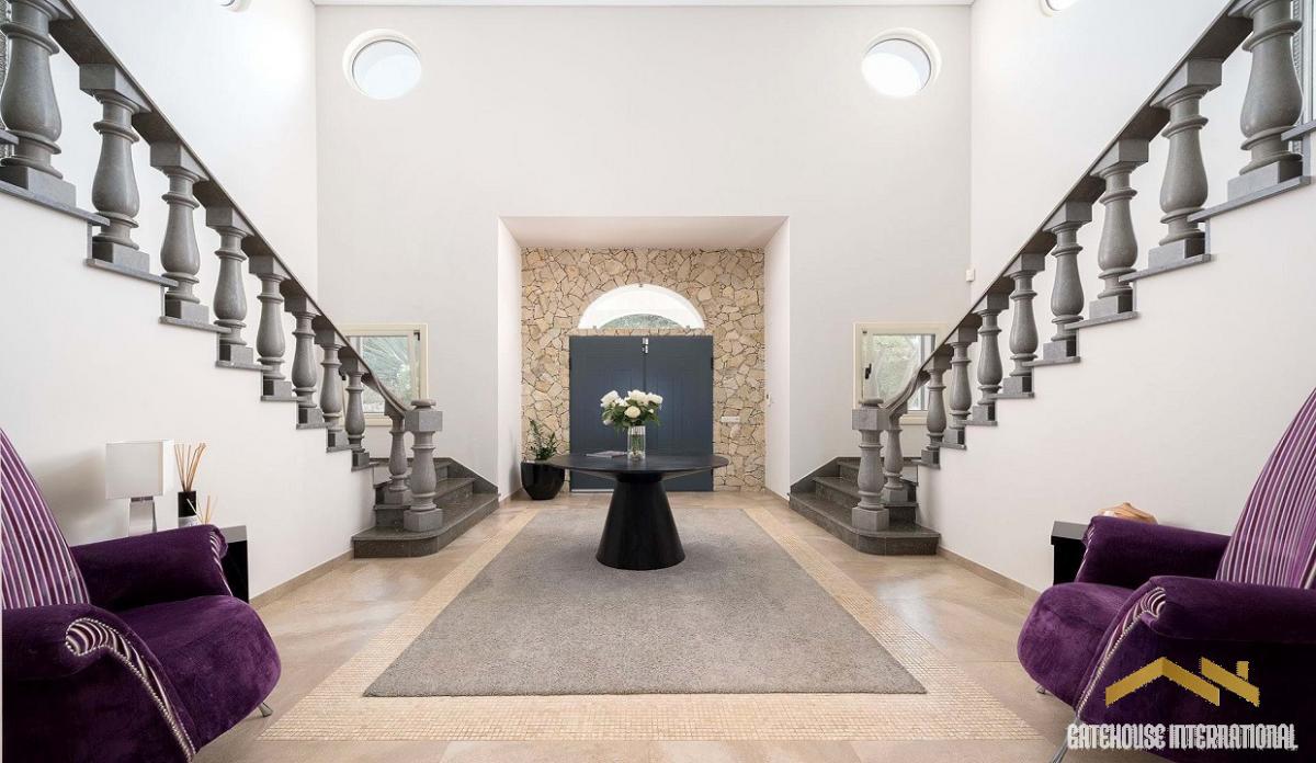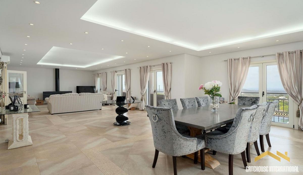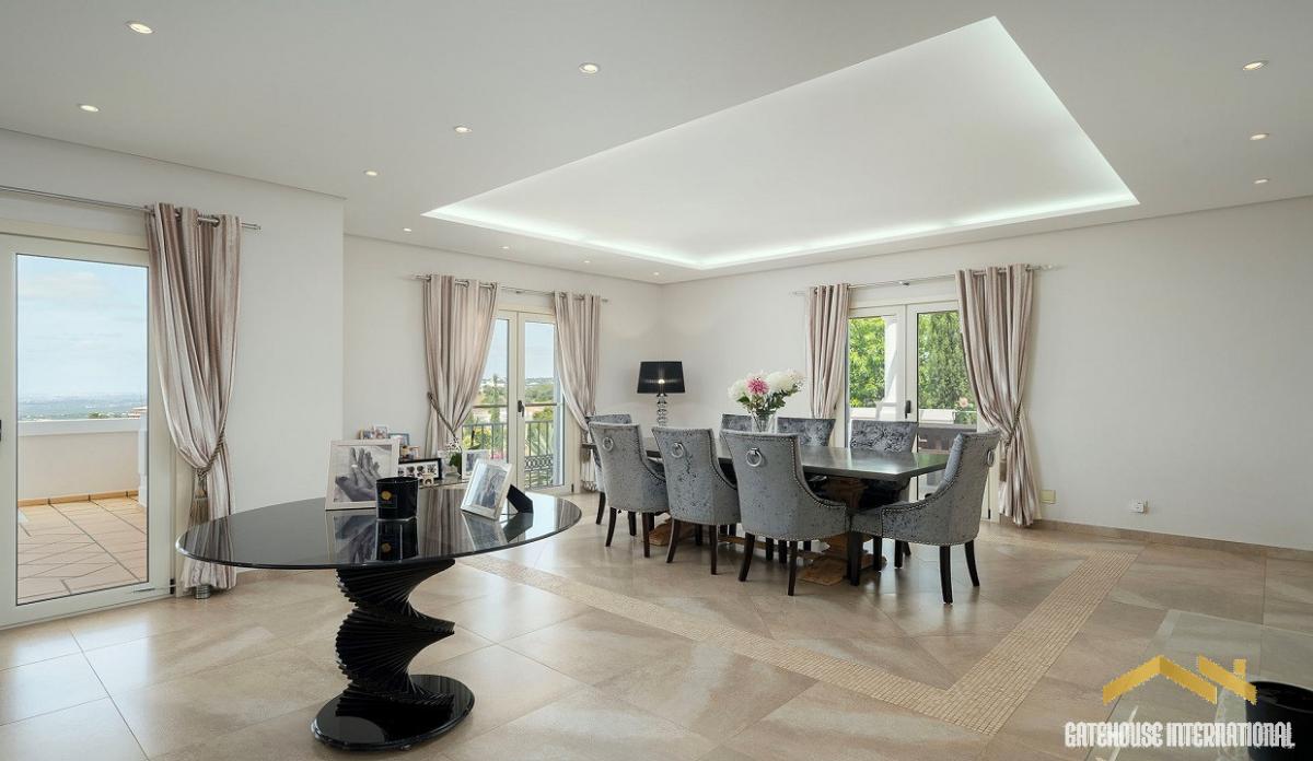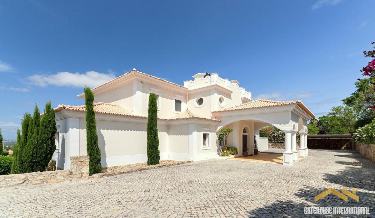 5 Bed Villa in Loule Algarve With Stunning Views - located in the hills north of Loule in Vale das Flores is this striking 395m2 villa in a plot of 5,800m2 with 3 floor levels with a lift and features 5 bedrooms, 5 bathrooms, double garage, swimming pool and fabulous views to the coastline. The villa comprises of a reception hall with a double-sided staircase, an open-plan living and dining area extending into a fully fitted and equipped kitchen. Large French style sliding doors open onto the terrace for extended indoor-outdoor living. This level also has two en-suite bedrooms and a separate guest visitors WC. The first floor has 3 bedrooms suites with a basement with a utility and storage areas, home gym, sauna space and games room plus a double garage, and ample space for practical living. There is a lift to all levels. Outside, the south-facing terrace flows gracefully down to landscaped gardens, revealing sweeping vistas of the sea and surrounding countryside. There is a large swimming pool with a large shaded lounge area also. in brief: - reception hall - visitors cloakroom - lounge and diner - kitchen breakfast room - utility room - 5 bedrooms - 5 bathrooms - gym and sauna - games room - double garage - swimming pool
