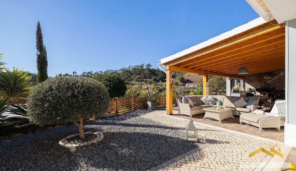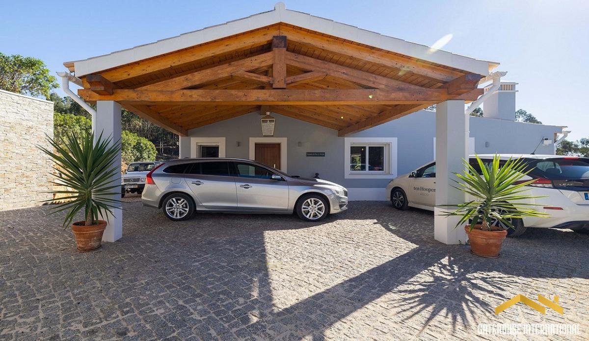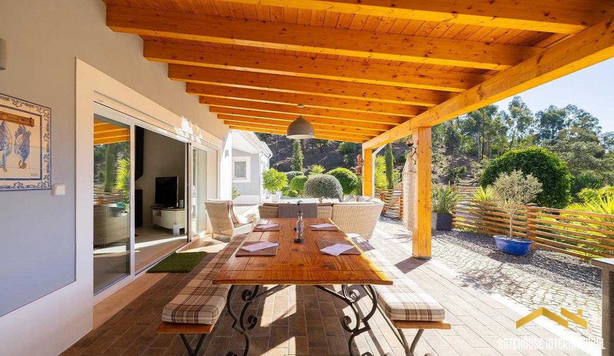 This 194 m2 villa set on a 10,200 m2 plot with approximately 100 metres of river frontage, features an entrance hall, spacious open-plan living area, dining space, fitted and equipped kitchen with a breakfast island, three well-proportioned bedrooms, two bathrooms, a separate utility room and boot room, a covered, south-facing terrace with an outdoor kitchen and barbecue, Al Fresco dining spaces, parking space, double carport, garden, orchards with a wide variety of fruit trees such as mango, plum, apricot, guava, lemon, lime, pear, orange, etc. and a separate outbuilding with three rooms is currently used for storage and offers excellent potential for conversion into a home office, gym, or a creative studio. Layout * Entrance hall * Open-plan living and dining area with fireplace * Modern open-plan fitted kitchen with breakfast island * Utility room and boot room * Three bedrooms and two bathrooms Outside * Terraces and a covered dining area * BBQ, outdoor kitchen * Double carport and ample parking * Gardens, orchard * Storage annex with potential for an office, gym, or a creative studio Location Located in the hills of the western Algarve, Portugal, within 20-40 minutes north of major coastal towns like Portimao, Lagos, and Carvoeiro. At a glance * Two-storey * 194 m2 build, 10,200m2 plot * Built in 2019 * Three bedrooms, two bathrooms * Storage annex * Terraces, covered dining, outdoor kitchen, BBQ * Double carport, parking, garden