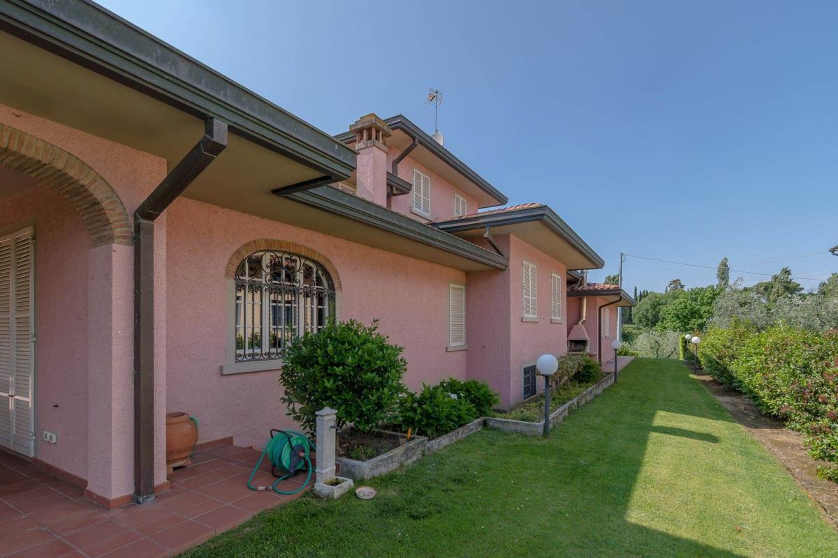 The main villa, built in 1987, covers about 430 sqm over several levels, impressing with its spaciousness and attention to detail. The ground floor features a large living room with fireplace, an elegant dining area, and a fully equipped eat-in kitchen with pantry—all facing beautiful countryside views and creating an atmosphere of genuine Tuscan elegance. The slightly raised sleeping area includes a master suite with private bathroom, two double bedrooms, and two additional bathrooms. The attic, bright and divided into two rooms, is ideal as a study, relaxation area, or additional bedrooms.