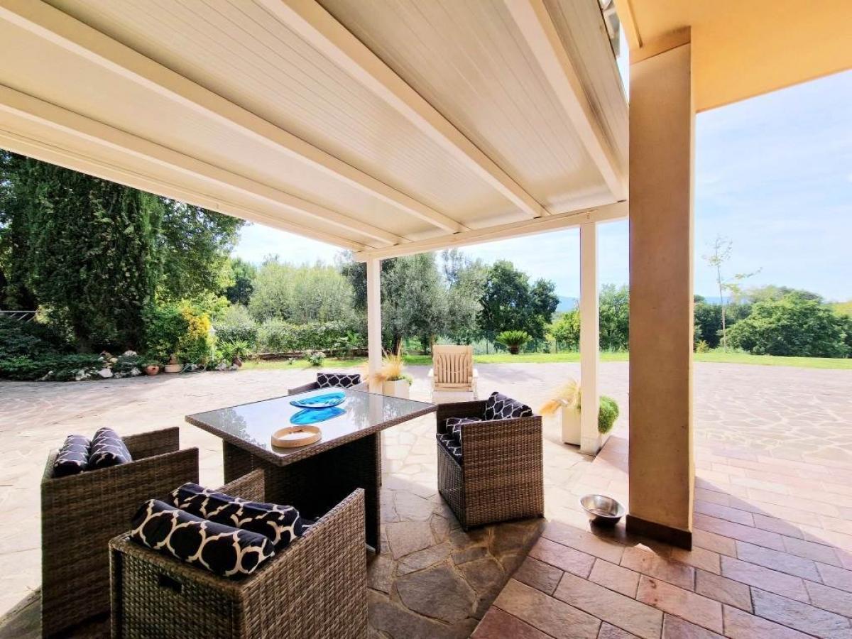 The villa is surrounded by a beautiful fenced garden with automated driveway gate and pedestrian access, as well as an adjacent plot of land of about 6,000 sqm. Outdoors, the property includes a car shelter, barbecue area and additional versatile spaces suitable for various uses. The extensive green area guarantees privacy, tranquillity and the chance to enjoy outdoor spaces throughout the year, making this residence an ideal retreat immersed in nature yet only minutes from town.