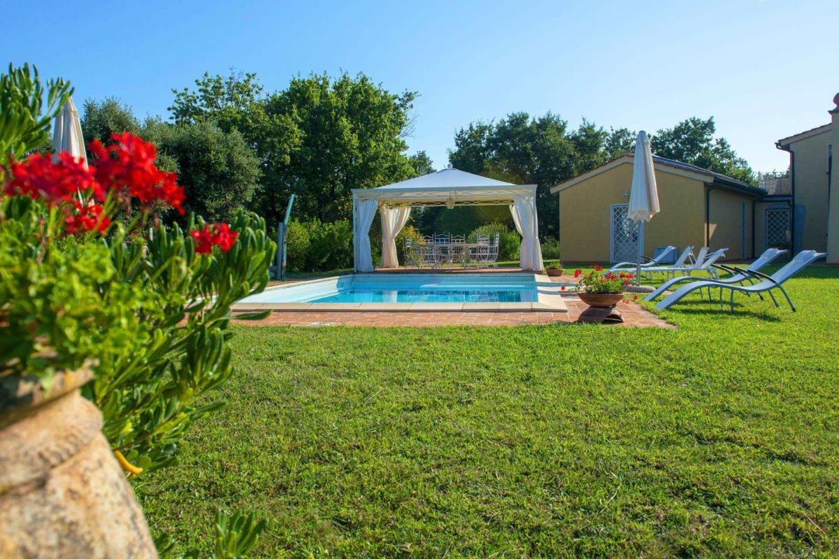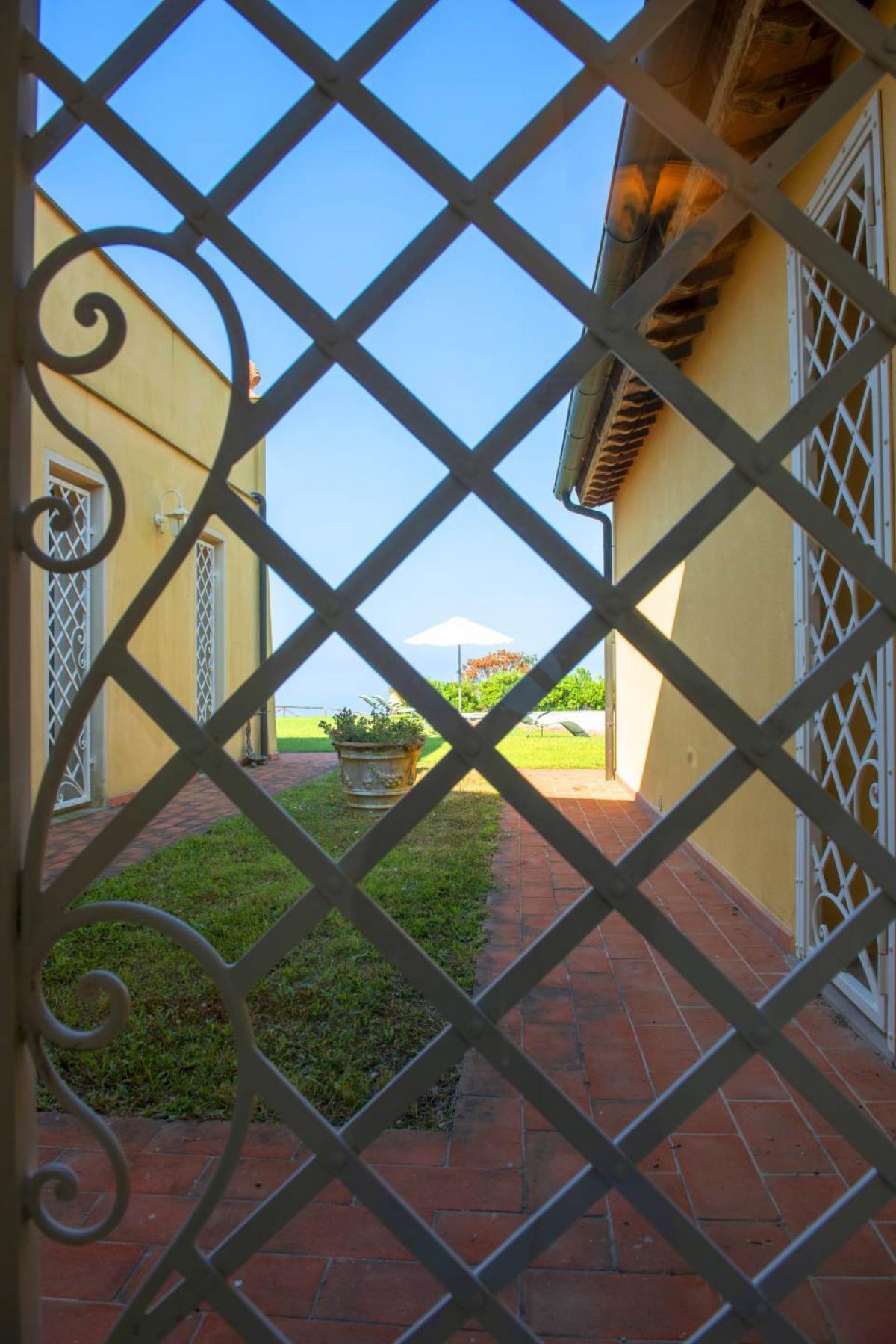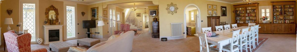 Villa Poggio al Pruno, located in a panoramic position between Cecina and Volterra, at 630 meters above sea level, offers breathtaking views of the sea, the Tuscan archipelago islands, as well as Bolgheri and the entire Etruscan coast. Built in 2007, the villa spans two levels. On the ground floor, there is a large double living room of 80 sqm, a kitchen, three bedrooms with private bathrooms, a single bedroom, and a service bathroom. A large staircase leads to the first floor, where there are two additional bedrooms, another bathroom with a whirlpool tub, and a large terrace with a solar greenhouse. The tower or annex has a kitchen on the ground floor and a bedroom with a bathroom on the first floor. The spaces are large, bright, and well distributed, ideal for a private residence or hospitality business.