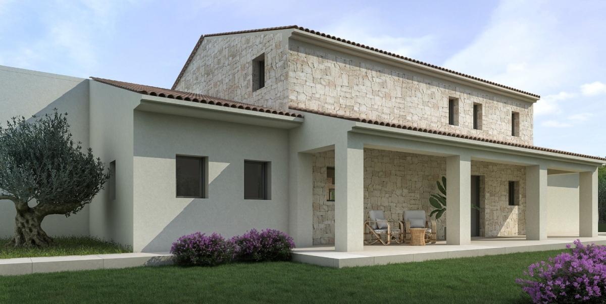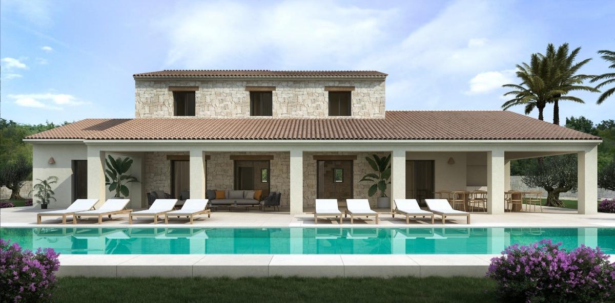 MorairaThis mediterranean style villa has 3 floors which are connected by an internal staircase. The main floor has a spacious open-plan living-dining room-kitchen. The kitchen is fully equipped and has an island for cooking. It has 4 bedrooms and a guest toilet. The property also has a basement and a utility room.
