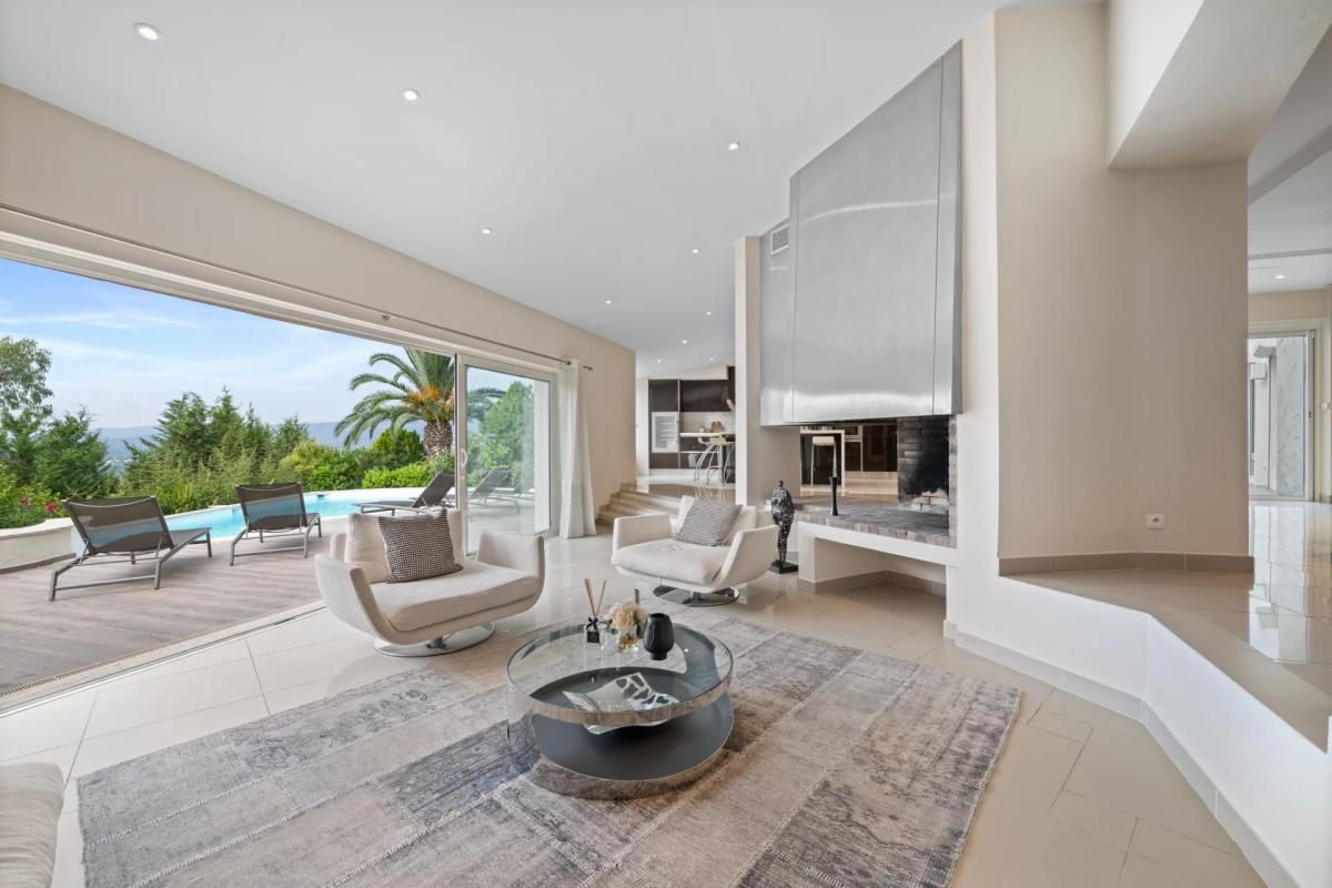 Set in a high position with an open view on the Esterel, in a secured domain, this stunning Couelle villa of approx. 620sqm has been entirely renovated in a contemporary style. it offers large and bright reception rooms leading onto the terrace, the pool and the landscaped garden of approx. 2730sqm. This majestic property enjoys 6 bedrooms including a master suite with 2 dressing rooms and a large bathroom. 4 garages and access to the amenities of Castellaras Le Vieux (tennis courts and swimming pools)