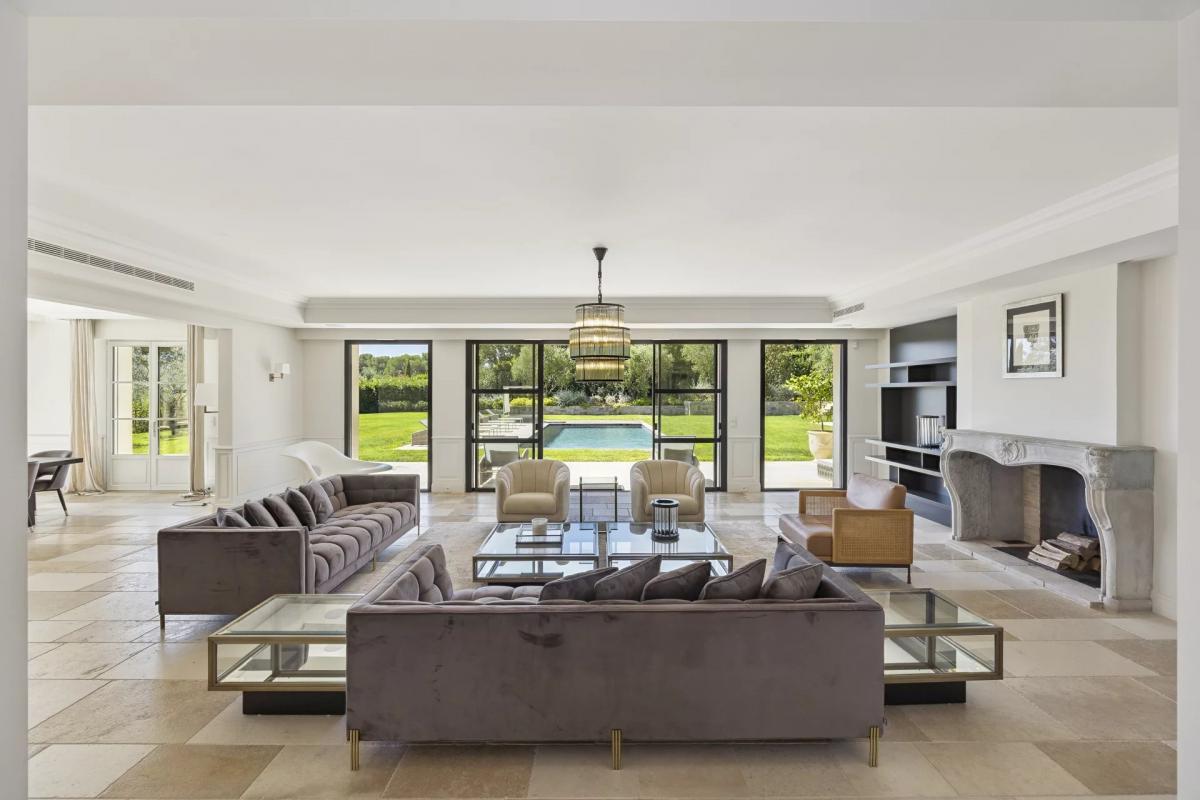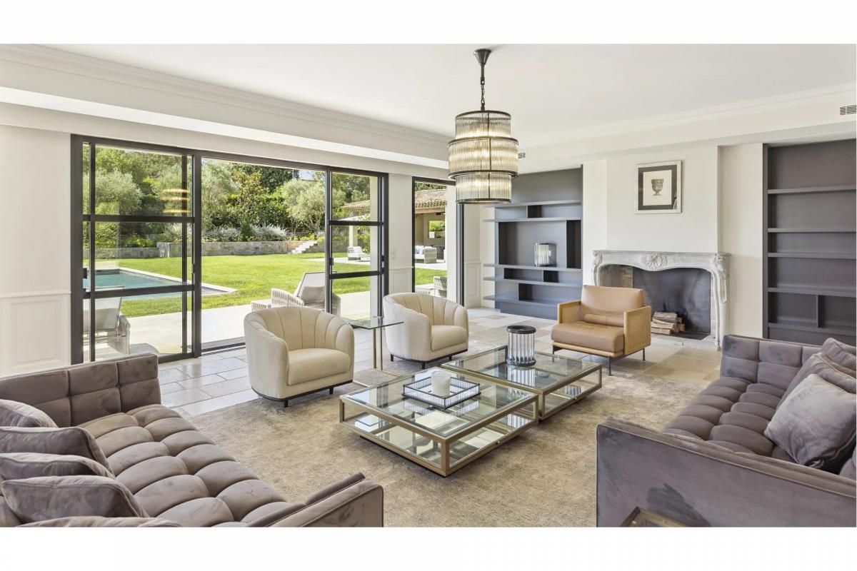 Splendid property of approx. 480 sqm in the heart of a magnificent landscaped flat garden overlooking one of Mougins' most sought-after hills, close to golf courses, international schools and the beaches of Cannes.