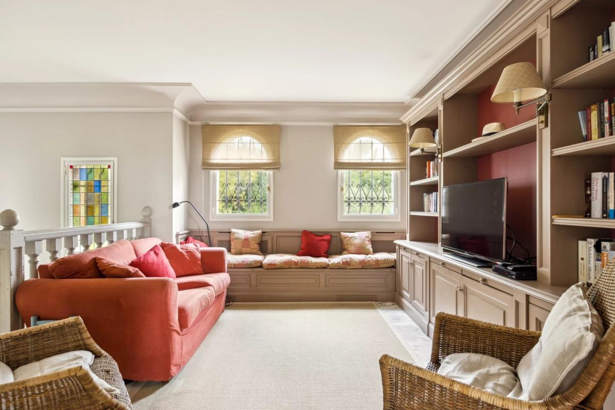 Das Obergeschoss ist ein echter privater Familienbereich, da es ein Fernsehzimmer im Zwischengeschoss umfasst, das je nach Bedarf einen Entspannungs- oder Arbeitsbereich bietet, sowie vier komfortable Schlafzimmer mit ihren Duschbadern und eine Master-Suite mit eigenem Bad und Ankleidezimmer.