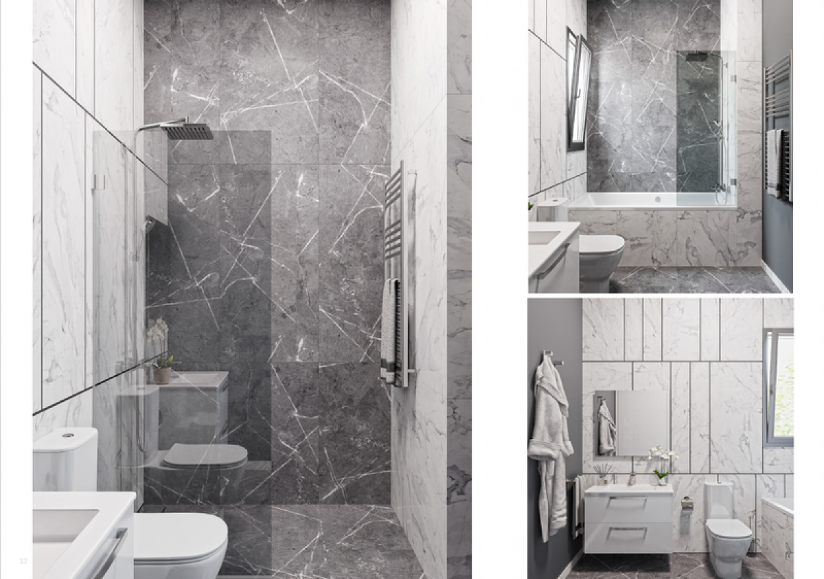 Tiles: Masterstone Silver Poler combined with Calacatta white porcelain tiles.