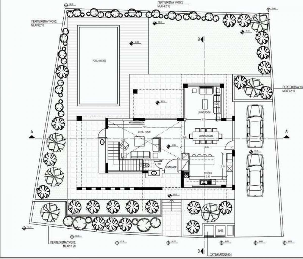 The luxury three bedroom villa is situated in a quiet area above the highway in the municipality of Mouttagiaka, at only 5 minutes drive from the sandy beaches and the Tourist area. It is close to all amenities.It has an internal covered area of 220m2 and 87m2 of covered verandas. It is build on a plot of 558m2.
