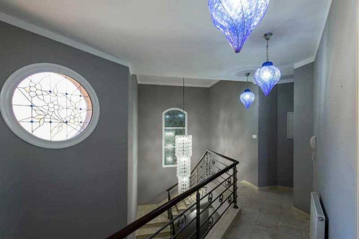 The garden features an irrigation system, an open area for entertaining, a BBQ, and a hydromassage jacuzzi. There is parking for two cars on the property and space for six more. The villa boasts modern insulation technologies, customized solid wood doors throughout, Italian Murano lighting, and underfloor heating in the bedrooms and bathrooms.