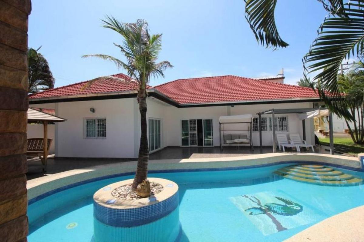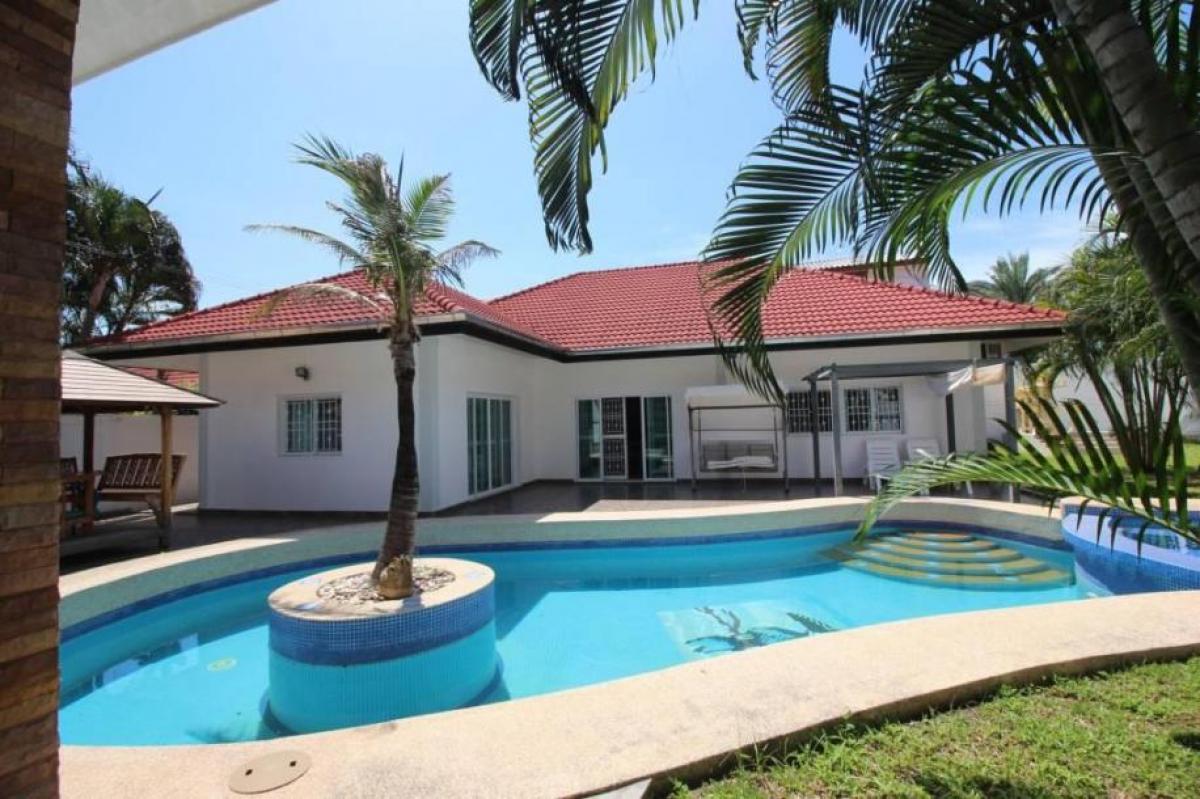3 bedrooms all ensuite, L shaped open plan lounge , diner and kitchen. Outside kitchen and toilet outside back door. Nice garden and large swimming pool. Villa in secluded cul-de-sac with good security. In the gate and all doors and windows have decorative security screens. Other things to note Walking distance to Vana Nava water Park and the large local Market. 5 minute drive to Bluport shopping mall and less than 10 minutes to Hua Hin Centre. ***Please ask for more information or to arrange a viewing***- * Terrace
