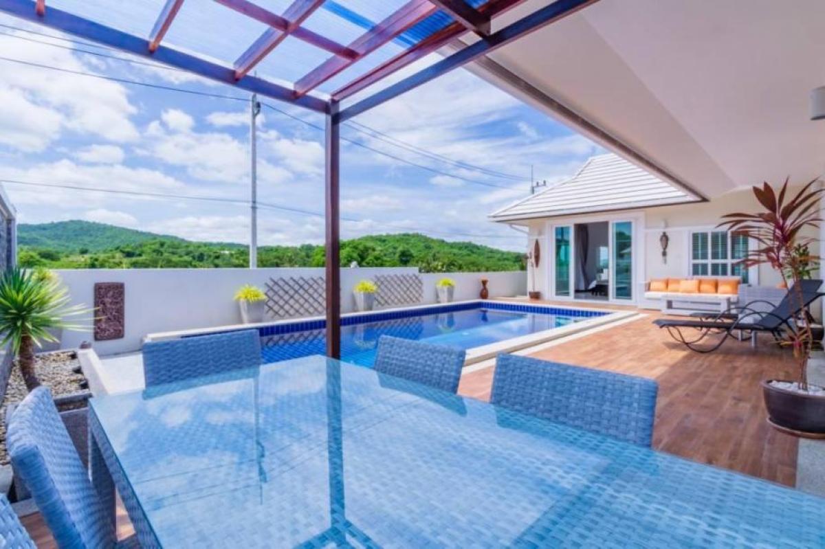 This nice 3 bedroom pool villa is in a excellent location under 10 mins drive to Bluport shopping centre. The villa features a very spacious open plan living, dining and modern fully equipped kitchen, 3 bedrooms and 2 bathrooms. Outside is a good sized pool, outside bathroom with shower, outdoor shower, storage, covered terraces and covered dining area and car port. The outside area has great views to Banyan Golf Course which is only a few minutes drive away. The villa comes fully furnished as shown in the photos and is in a well run development with 24h security, wide roads, fitness room and communal pool.- * Terrace