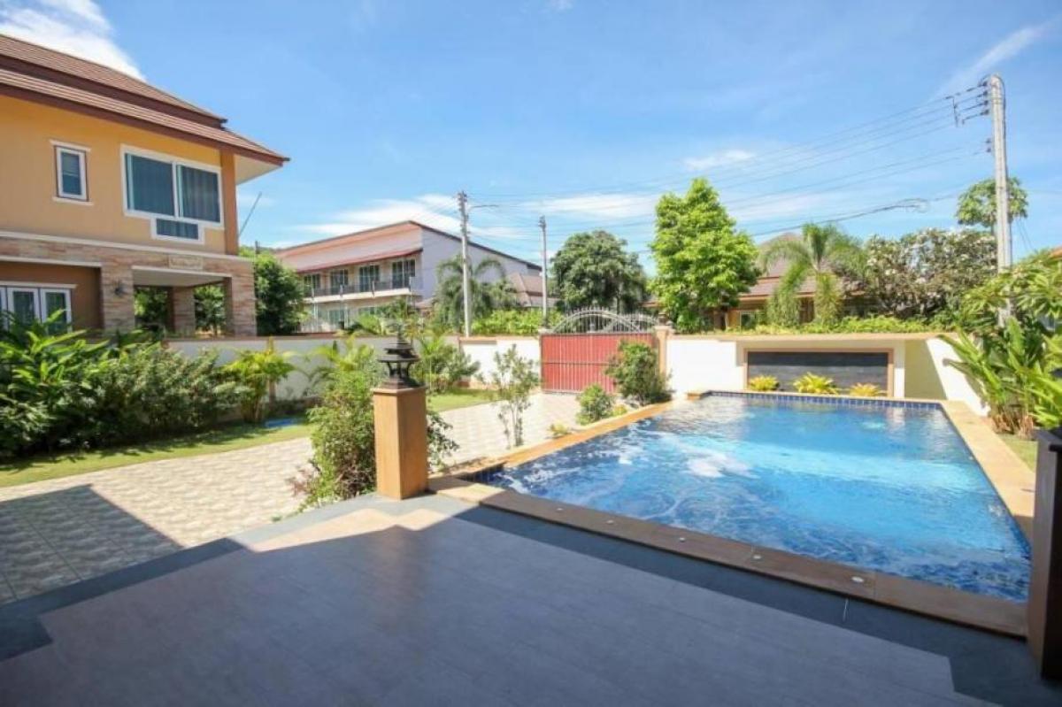 The Villa has a convenient location where you can find coffee shops, football field, restaurants, 7-11, and much more nearby. Downtown Hua Hin is approximaly 10 min drive. This Villa was completed in 2019 and set on a large 766 sqm. land and will be sold unfurnished as shown in pictures. The Ground level has 1 bedroom with walk-in closet and en-suite bathroom, 1 toilet, an open-plan living/dining area, fully equipped L-shaped kitchen with kitchen island. On Upper level there are 4 well appointed bedrooms, 2 baths, and balconies overlooking surrounding area in addition to extra living room space. Property features; - 5 Bedrooms - 3 Bathrooms - Fully equipped kitchen - Private overflow 4x8 m pool - New Aircondotions in all bedrooms - Double carport - Transfer fees are included Ownership: Thai- * Parking Space