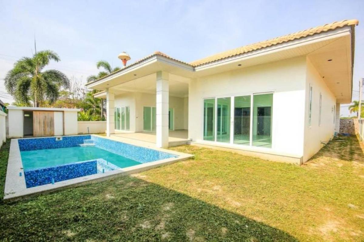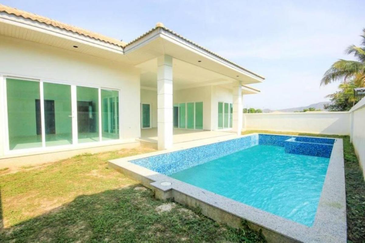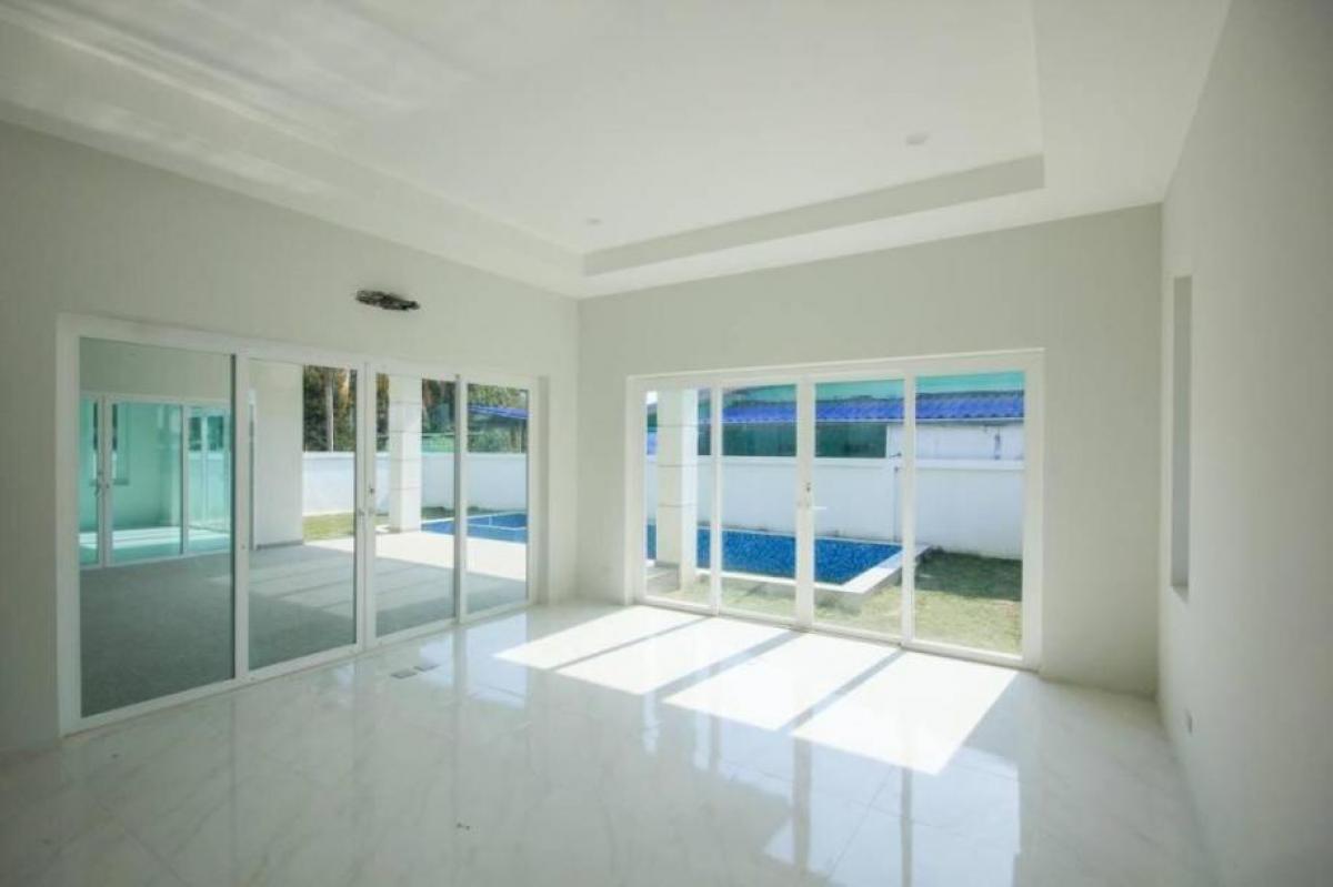 This 310 sq. meter large Pool Villa at 'Palm Gate' is waithing for your personal touch to complete.The location is just 10 min away from Hua Hin town and beautiful beach. The project has common facilities as basket ball court and garden. Property features; 3 Bedrooms 3 Baths Kitchen 42 sq.meter large covered poolside terrace 10 x 4 m pool Jacuzzi 1.80x1.80 m Large store and utility area behind the kitchen Outdoor toilet and pumproom 2 covered carpark Garden area Property details: Celing hight from 3,2 - 3,4 meters 15 cm insulation in the ceiling 20 cm blocks for house construction Contact us for more information. Optional to complete the villa buy yourself with a price reduction. Monthly fees: 3.75 baht/ sqm. Ownership: Freehold Built year: 2019- * Parking Space