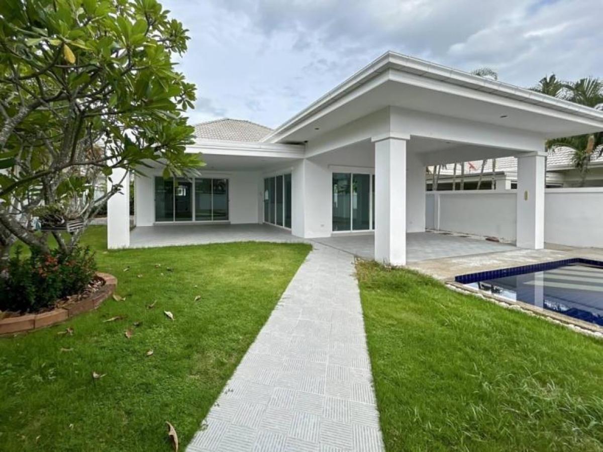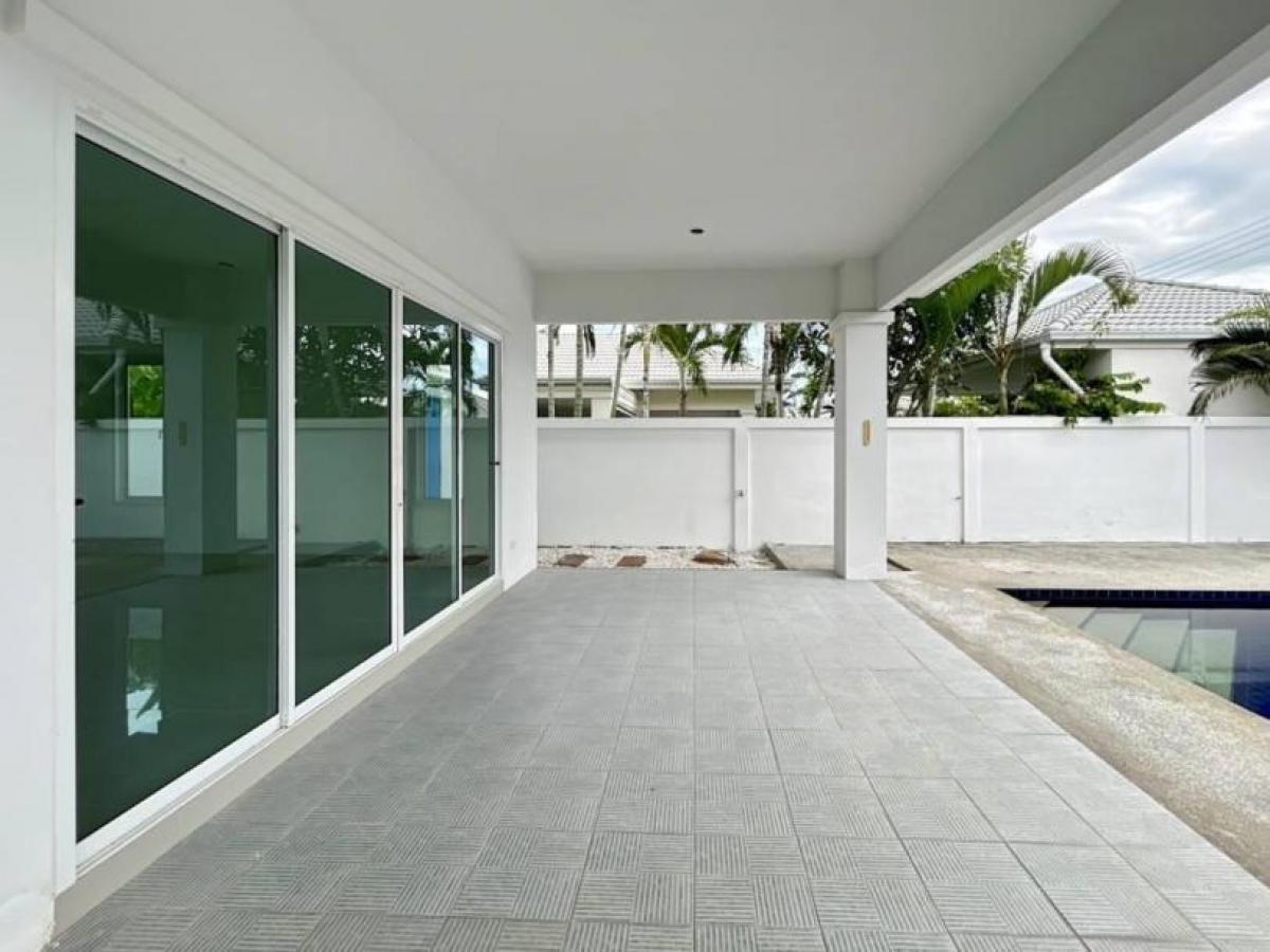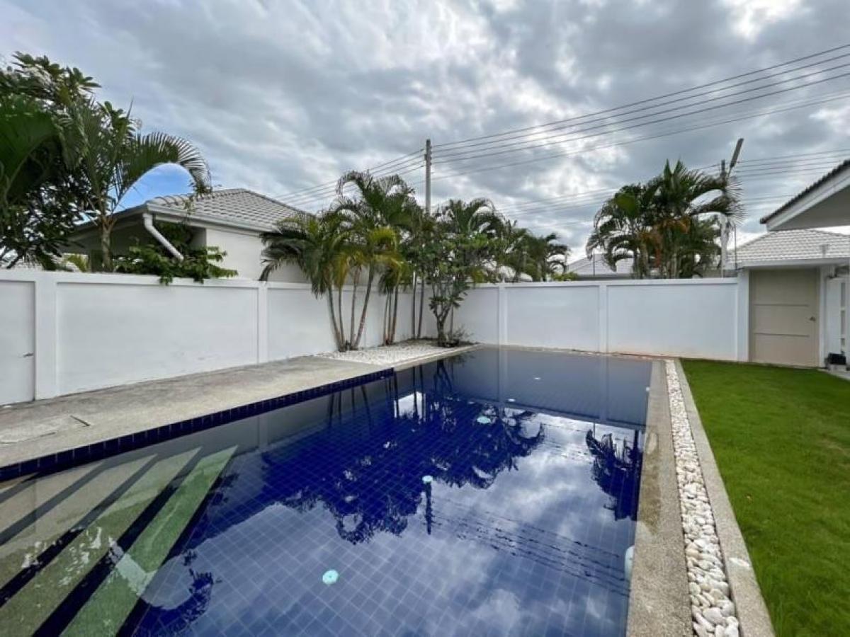 This recently renovated 3-bedroom pool villa is located in The Lee's 3, a well-regarded development ideal for full-time living or rental investment. The property is conveniently situated just 7 kilometers from Hua Hin town, easily accessible via Soi 88. With shops and restaurants nearby, this villa offers a comfortable lifestyle in a tranquil setting.The villa features an open-plan living and dining area, providing ample space for relaxation and entertainment. The fitted kitchen is designed for convenience, making meal preparation straightforward. The villa remains unfurnished, allowing new owners to personalize the space to their liking.
