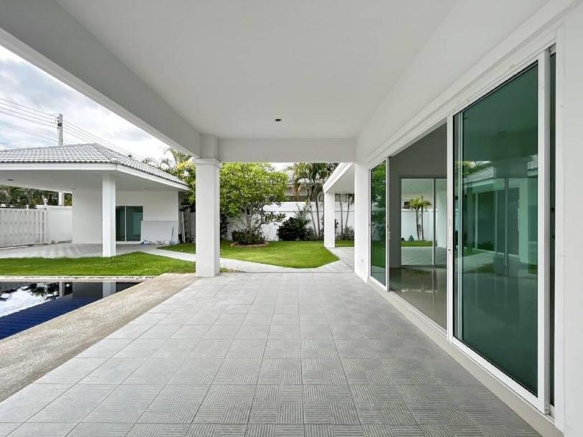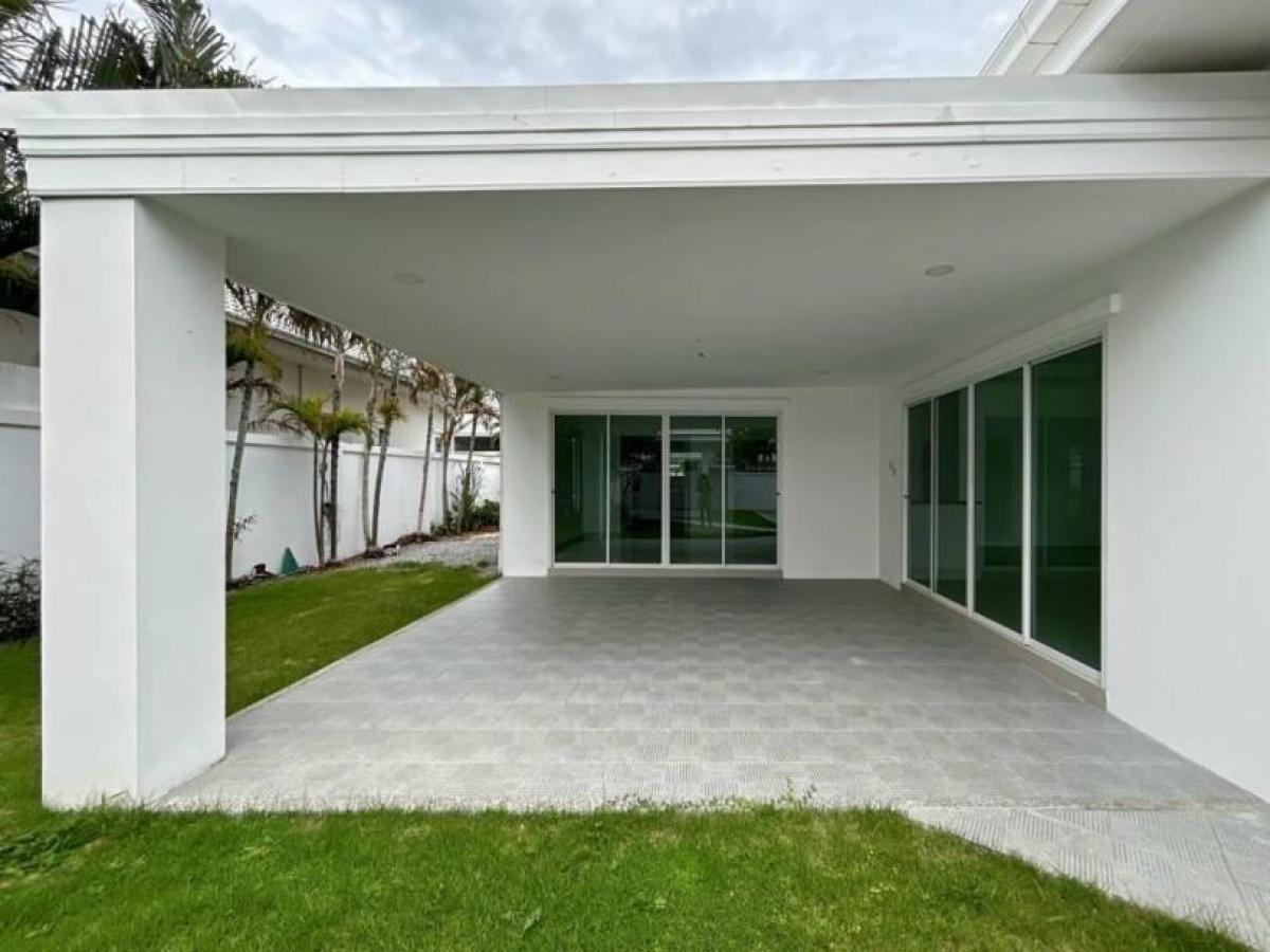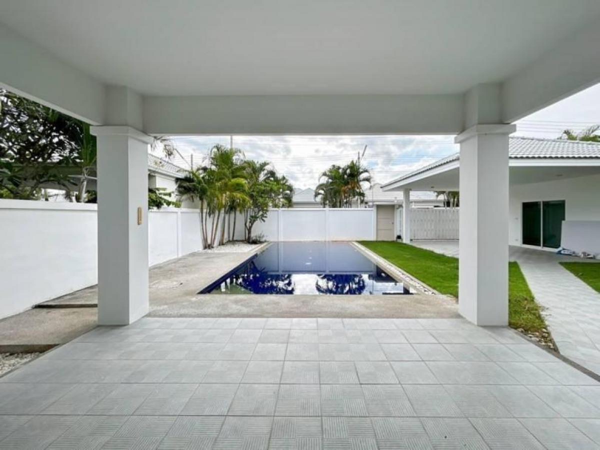 A private swimming pool enhances the outdoor experience, perfect for enjoying Hua Hin's warm climate. The property includes two covered terraces, providing shaded areas for outdoor seating or dining. Additionally, there is a two-car covered carport, ensuring ample parking space.