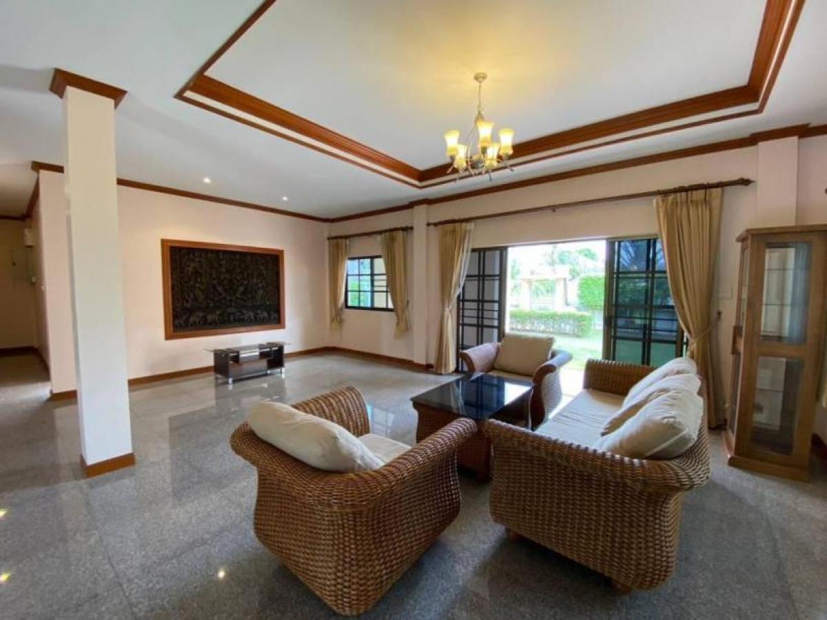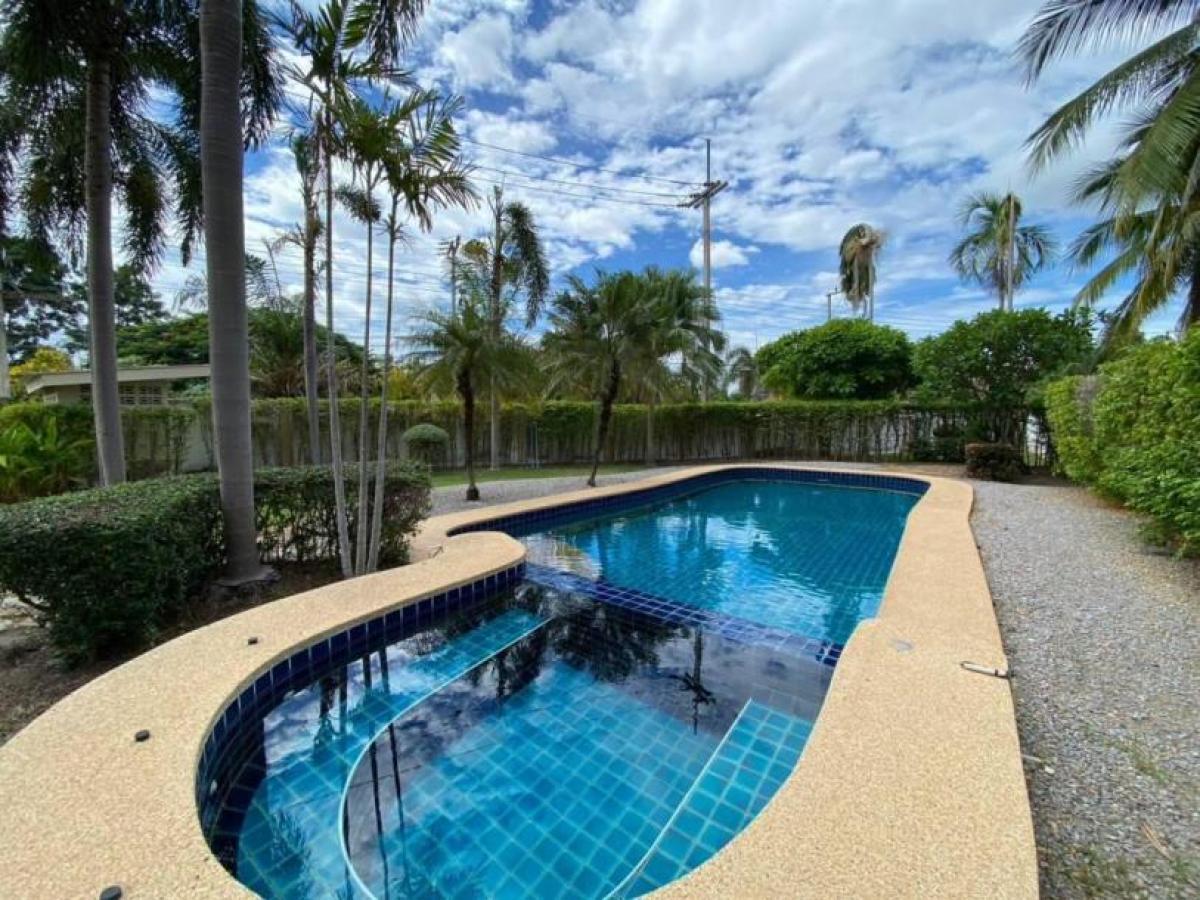 This 2 story private pool villa is situated in Soi 6 in an area called Bor Fai, less than 10 minutes from the center of Hua Hin. The property consists of a very considerable land size of 800 square meters, or half of 1 Rai. The total living area is 245 square meters. The villa is excellently priced at under 7 million Baht compared to other properties on the market at similar sizes and specifications. The villa is situated on a corner plot and is totally private, with the pool at the back of the house. There is a large single covered car port big enough for large cars, plus uncovered parking space for an additional car. The tropical Thai garden is fully landscaped and quite beautiful. The main living area is on the ground floor and consists of a large open plan lounge and dining area, an enclosed European kitchen with a view of the topical garden, and there is also a home office next to the kitchen on the ground floor. (The wall between the kitchen and the office can easily be removed to enlarge the kitchen further) There is of course also a guest toilet downstairs. On the second floor, you have 3 spacious bedrooms and 2 bathrooms. The master bedroom is the largest, and also features a large 2nd floor terrace with a lovely view of the back garden. Overall this is an excellent property for investment as the property can easily be rented out on a short or long term basis. The house is also perfect for a family home away from Bangkok. Contact us today to view this beautiful property!- * Terrace