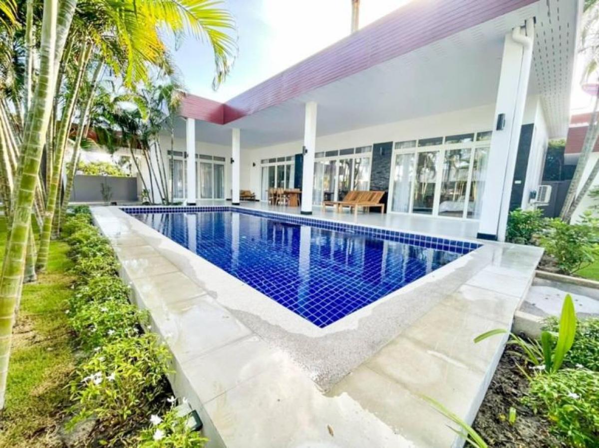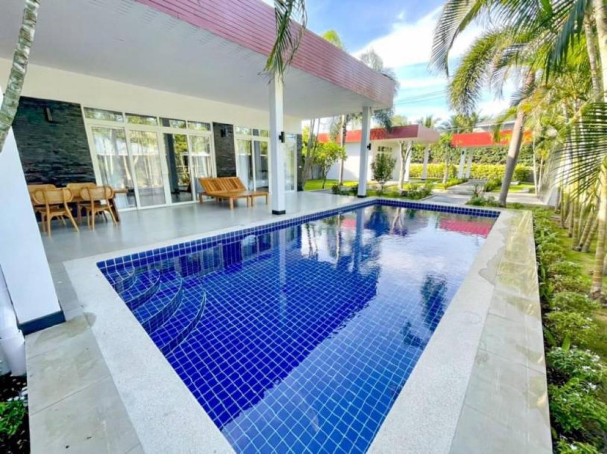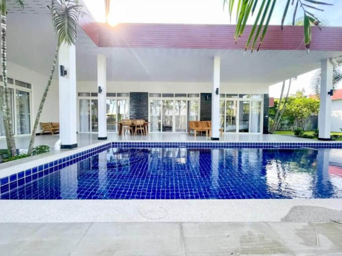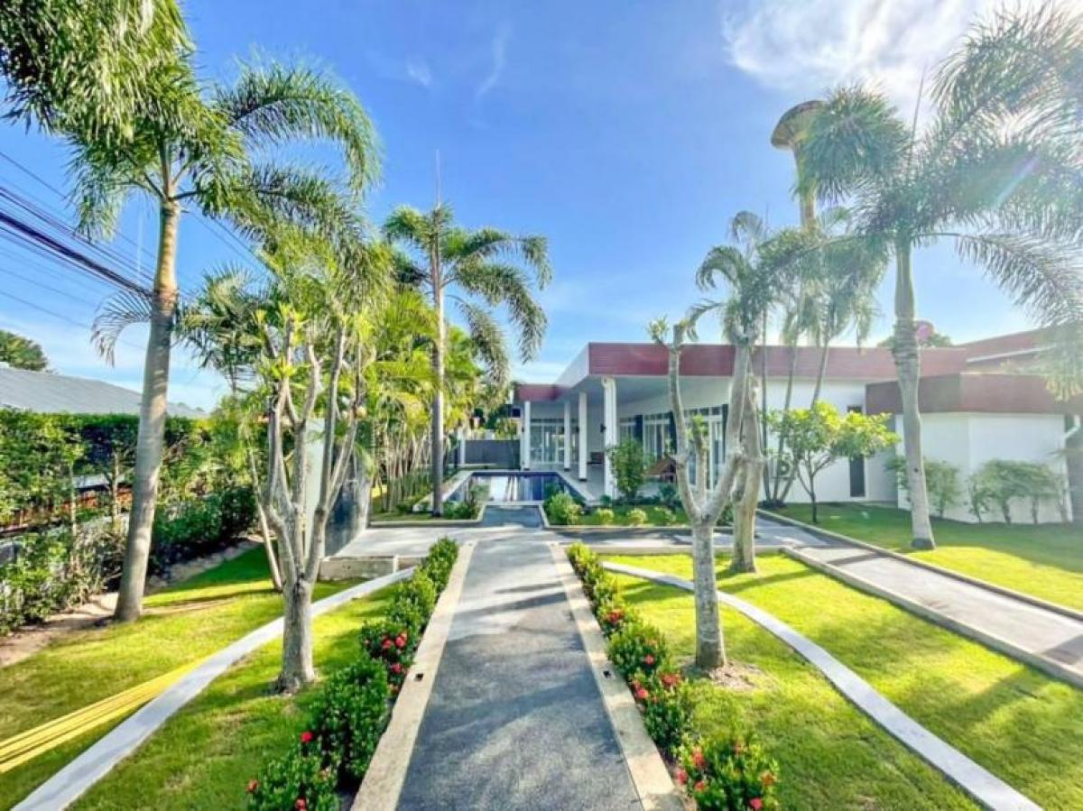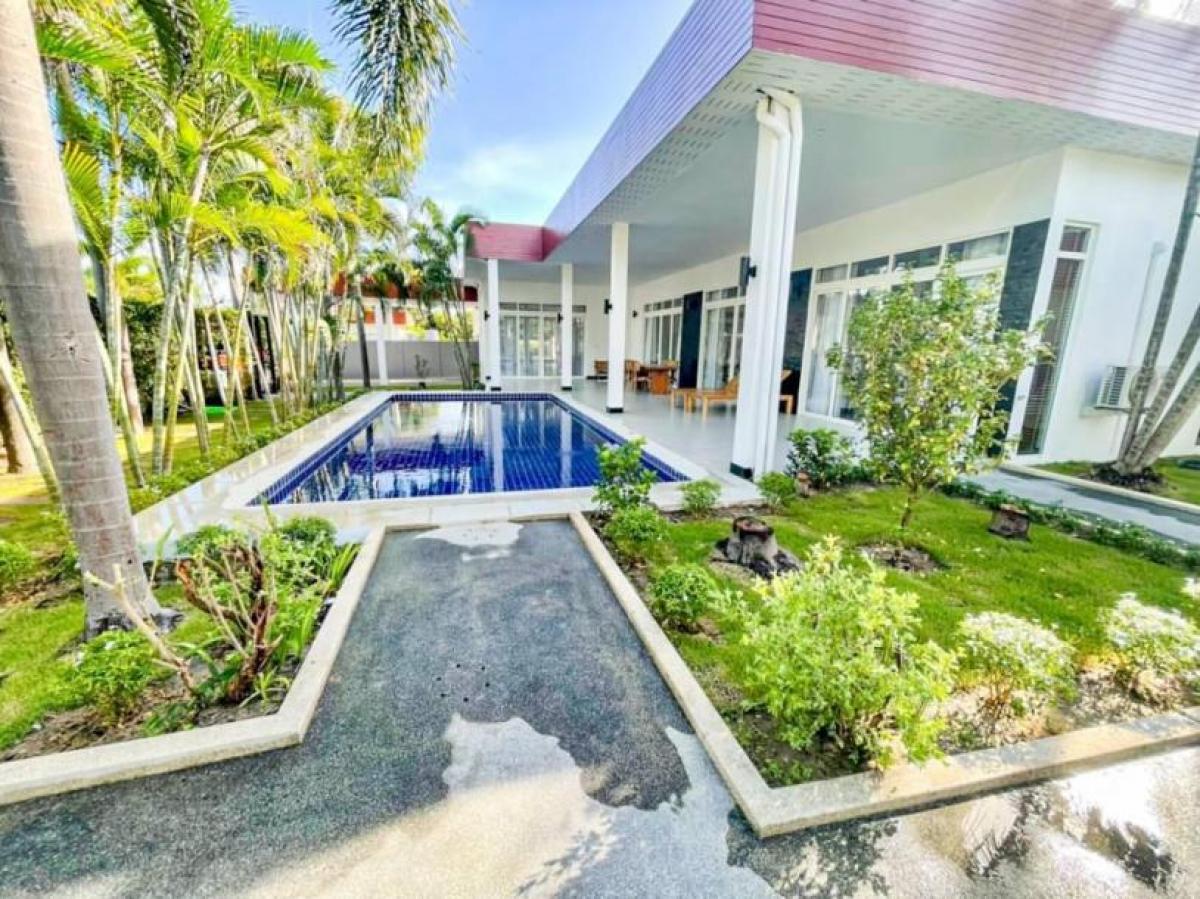 This completely renoveted 4 bedroom pool villa is great located in Soi Hua Hin 112 which is just a few minute drive to the beautiful beach and Hua Hin town. The villa offers ample space perfect for all of your family and guests. Property features; - Newly renovated in 2022 - Single storey pool villa with guest house on 820 sq.m. land plot. - Spacious 350 sqm. of covered area included guest house. - Consist of 4 en-suite bedrooms with built-in cabinets and bathtub. - Open plan living space with equipped European kitchen and dining table set. - Large beautiful maintained garden - Private 9x4m saltwater pool. - Sold fully furnished -Ownership: Freehold -No common fees- * Terrace