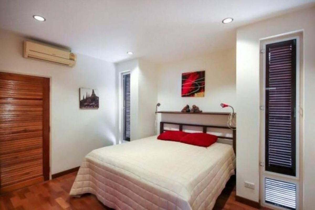 This villa is set over 2 floors with a total living area of 330 sqm including terraces. There are 4 spacious bedrooms with large double beds. All bedrooms have en suite bathrooms and are equipped with air conditioning. Other areas such as kitchen, living room and patio are equipped with ceiling fans.All windows are fitted with mosquito nets and the bedrooms also have dark curtains. On the 1 floor you will find a fully equipped European kitchen with island, dining area, private laundry / storage room, small living room and a bedroom with private bathroom with a entrance from the pool area. The 2nd floor is reached either via an external or internal staircase and has 3 bedrooms with bathrooms, TV lounge and two large balconies. Outdoors you will find your own private saltwater pool, sitting area, outdoor shower, toilet, sunbathing area, covered carport, covered dining area and storage room. The villa was completed in 2008 and is located in a fenced private area with a total of 16 Villas in different sizes and shapes. The villa is located in Soi 112 and has mostly Scandinavian owners. There is daily maintenance of the entire area and your private garden and pool with secutiry guard at night time. The property is sold fully furnished.-
