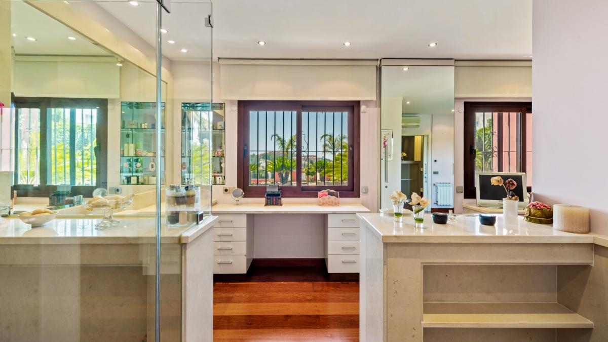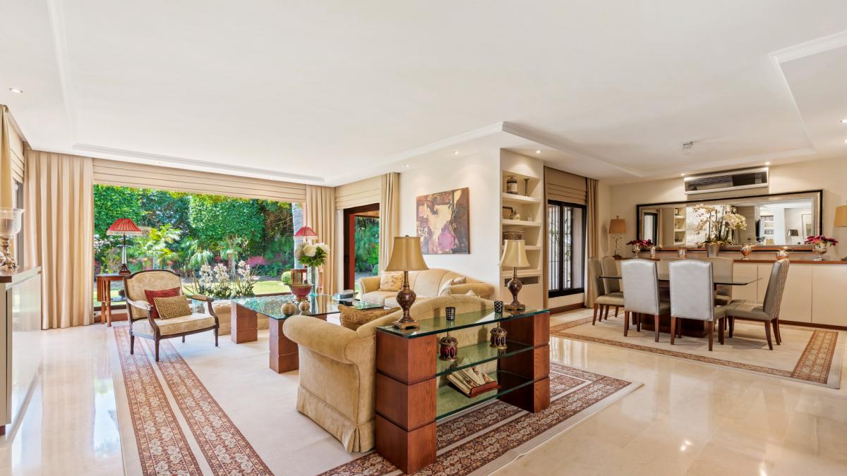 immerse yourself in the epitome of luxurious living, an exquisite five-bedroom, five-bathroom abode - Villa Amaral. Situated within the renowned and sought-after Nueva Andalucia in Marbella, this extraordinary property stands amidst the grandeur of the Costa del Sol's most prestigious golf courses, such as Los Naranjos, Aloha and Las Brisas. However, what sets Villa Amaral apart from its peers is its signature Mediterranean charm, thoughtfully refurbished in 2015, which tastefully marries the timeless Andalusian exterior with modern and high-quality interiors.Spanning an impressive plot of 1,772 m, the elegant home encompasses a built area of 684 m, thoughtfully divided into three levels. The ground floor is a haven of sophisticated comfort, featuring a spacious and superb living room with a tranquil fireplace, a stunning dining area and a fully equipped kitchen replete with modern amenities. This level also houses the main suite, showcasing two en-suite bathrooms, a pair of dressing areas, and additional private living space. Ascend to the first floor to discover four generously sized bedrooms, each with its personal dressing area and en-suite bathroom. The lower level is a world of its own, presenting a variety of recreational and relaxation spaces, such as a gym, a wine cellar, and a massage room. Service quarters, additional storage space, and a garage complete this level. The south-oriented property is designed to maximise sunlight and boasts gorgeous sea and mountain views.Villa Amaral's location is second to none. it is well connected with easy transport access, near essential amenities, and within proximity to the town, port, schools, and shops. The enviable location and nearby golf courses ensure a life full of leisure and luxury. Revel in the comfort of additional features such as air conditioning, double glazing, fitted wardrobes, and a pool view. The recent renovation, which stays true to the villa's original charm while infusing contemporary elegance, makes this property an irresistible abode for those seeking to bask in the grandeur of opulent living on the Costa del Sol.