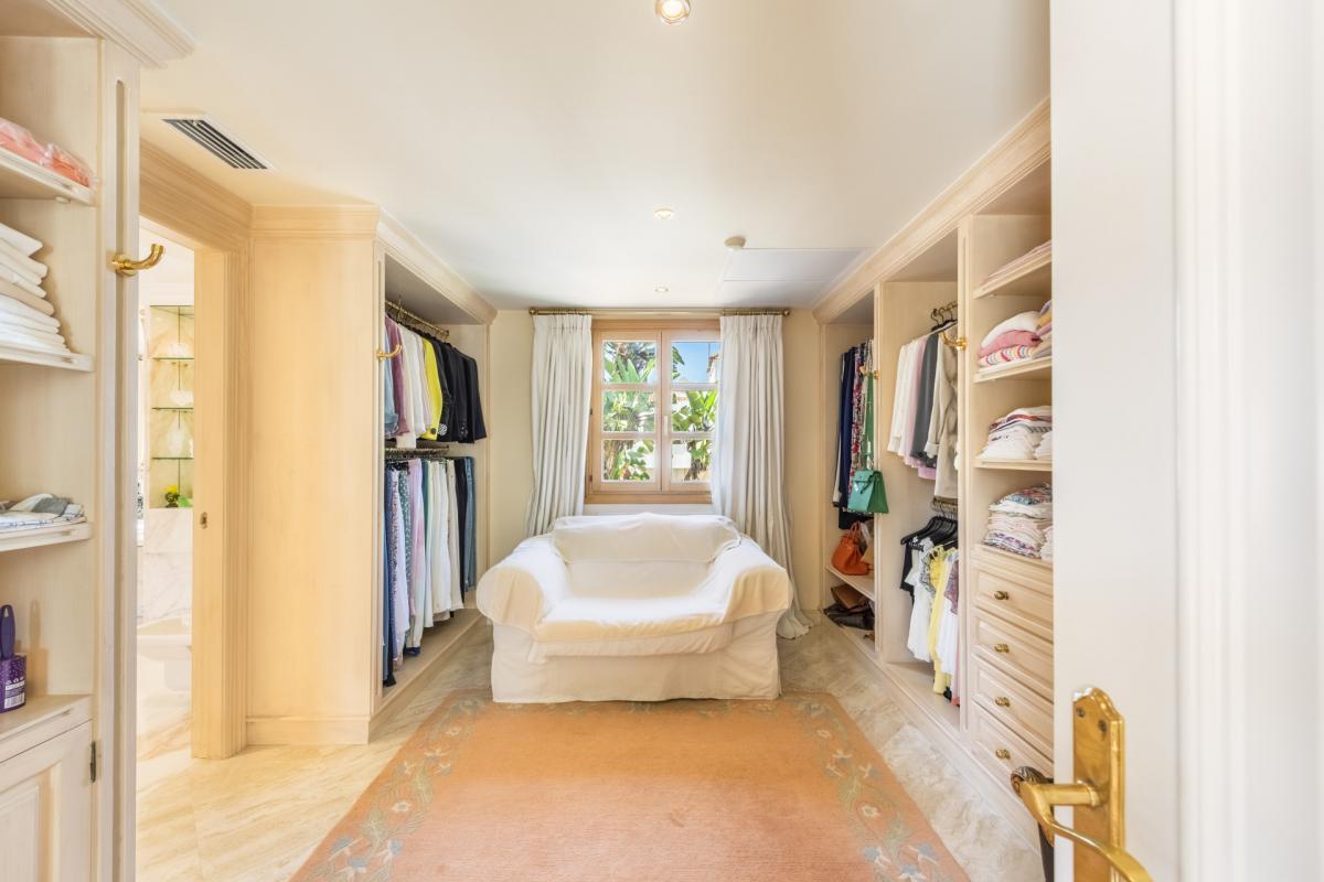 Nestled in the prestigious area of Las Brisas within Nueva Andalucia, Marbella, this classic villa offers a luxurious retreat surrounded by premier golf courses. its ideal southwest orientation ensures plenty of natural sunlight and sits just a short drive from the vibrant Puerto Bans and the beautiful beaches of the Costa del Sol. The home is perfect for those who appreciate proximity to high-end amenities, including Aloha's famous restaurants and bars, several international schools, and ample outdoor activities like golf and tennis.Upon entering, you are greeted with a grand marble staircase and expansive entrance that leads into a spacious open-plan living area. This includes a dining room and a lounge with a charming fireplace, perfect for entertaining. Large floor-to-ceiling windows offer views over a beautifully landscaped garden and a large pool area with a covered bar and dining space. The kitchen is a chef's dream, equipped with high-end appliances and a cosy sitting area, making it a perfect spot for family gatherings. Additionally, there's a convenient guest suite with its bathroom, a separate office space, and laundry facilities accessible via a private entrance. The upper floor comprises three large bedrooms, each with access to a balcony providing stunning views and an opportunity to enjoy the enviable Mediterranean climate. The main bedroom features an ensuite bathroom and a walk-in closet. The property also includes a versatile lower level with a sauna, a bathroom, ample gym or entertainment room space, and staff quarters. The villa's location in Las Brisas, Nueva Andalucia, ensures easy access to its top amenities and transport links, making it a prime choice for families and professionals. Just moments from international schools and major shopping centres, and with easy road access to Marbella and the wider region. This villa represents the perfect blend of sophistication and practicality, making it an ideal choice for those looking to invest in a property that offers everything for a comfortable, high-end lifestyle in one of the most sought-after areas on the Costa del Sol. Whether you are entertaining guests, raising a family, or simply enjoying the tranquil surroundings, this property provides all the elements for a relaxing, upscale living experience.