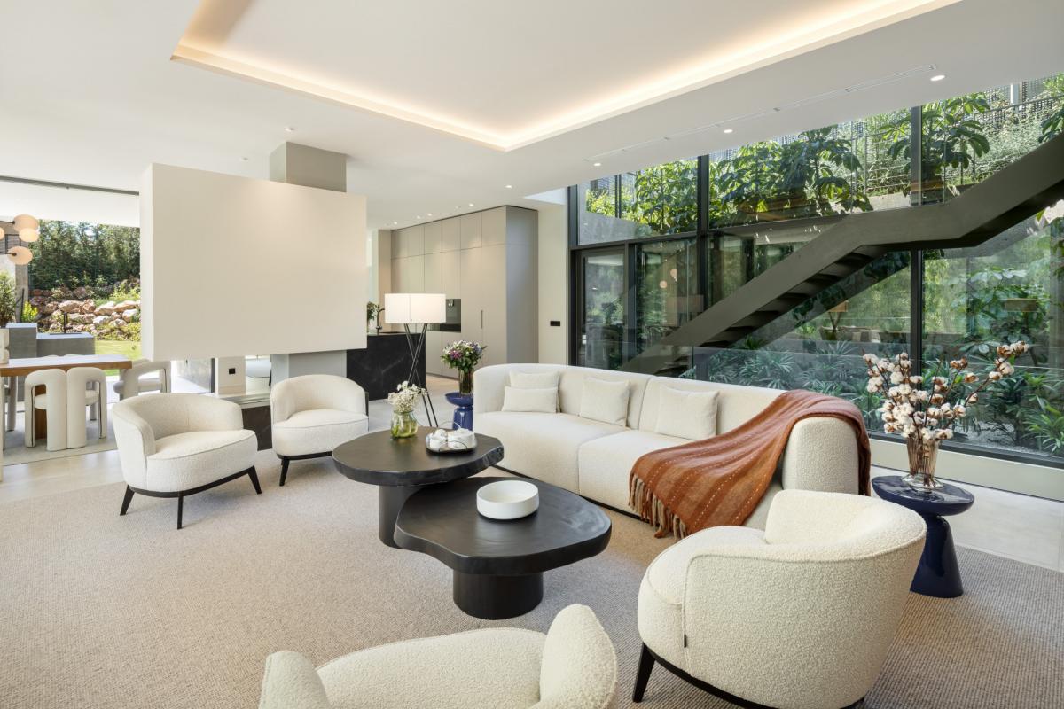This villa is a true masterpiece, thoughtfully designed with premium materials that blend harmoniously with its natural surroundings. The combination of lush greenery, warm wood accents, and light tones creates a serene, oasis-like atmosphere that exudes both tranquility and elegance.The ground floor serves as the heart of the home, offering an open-plan living room, kitchen, dining area, TV room/office, and an en-suite bedroom. The space effortlessly flows to the expansive terraces, which feature an outdoor kitchen, living and dining areas, and a stunning pool area, providing the perfect setting for relaxation and entertaining.Upstairs, the master bedroom boasts a spacious walk-in closet and captivating views, along with two additional en-suite bedrooms. The rooftop terrace is an ideal venue for socializing, complete with seating around a fire pit, a jacuzzi, and provisions for an outdoor kitchencreating an unforgettable space for gatherings.The basement offers incredible customization opportunities, featuring a TV room with pre-installed kitchenette connections. it also includes a games room, gym, spa with a sauna and Hammam, one en-suite bedroom, and an additional bedroom/office that shares a bathroom with the gym area. Both the TV room and basement bedroom come with pre-installed kitchenette connections, allowing for further personalization. Additionally, the villa offers the flexibility to remodel the top floor to suit your preferences. Fully furnished, the villa includes all furniture in the price.Nestled in the prestigious La Cerquilla, one of the most sought-after areas of Nueva Andaluca, the villa is ideally located just minutes from the iconic Puerto Bans. The area offers a wealth of amenities, including a wide selection of restaurants, shopping centers, renowned international schools, and some of the finest golf courses on the Costa del Sol, such as Las Brisas and Aloha Golf Club.