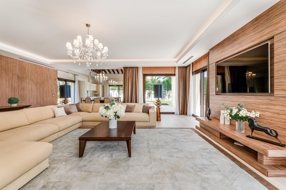This spectacular frontline golf villa is a flawless fusion of luxury, cutting-edge technology, and unbeatable location. Positioned on a unique triangular plot at the end of a peaceful cul-de-sac, the property enjoys unobstructed golf views on two sides, offering a sense of total seclusion and tranquility.Situated in the heart of Nueva Andaluca, the villa boasts breathtaking panoramas that stretch across the lush greens of Los Naranjos Golf Course, the sparkling Mediterranean Sea, the majestic La Concha mountain, and its own private tropical garden filled with over 20 towering palm trees. The home is ideally located just five minutes from the beach, Puerto Bans, and Aloha College, placing convenience and exclusivity at your doorstep.Crafted with the highest quality standards, the villa features premium materials throughout, including custom cabinetry, designer windows, electric shutters, and other details sourced from top luxury brands. The home comes fully furnished with bespoke italian pieces by the renowned brand Smania, adding an elegant and cohesive touch to every space.With six spacious en suite bedrooms, the villa is designed to offer exceptional comfort and privacy for both residents and guests. The standout master suite is a true retreat, featuring a private balcony with stunning views, a custom walk-in dressing room, and an ultra-stylish bathroom that embodies modern luxury.The open-plan living room is expansive and filled with natural light, seamlessly flowing into a fully equipped designer kitchen and elegant dining area. Floor-to-ceiling glass doors throughout the home create a harmonious connection between indoor and outdoor living. For added practicality, the home also includes a laundry area and a generous storage room.This residence is a haven for wellness and relaxation, featuring a modern heated saltwater infinity pool, a high-end private gym, and a luxurious spa zone complete with a Turkish bath and a Finnish sauna. The enormous twelve-car garage, illuminated by a glass ceiling, adds an impressive touch to the already extraordinary property.Equipped with a sophisticated domotic system, pre-installed alarm, and a state-of-the-art surveillance camera setup, the home offers complete peace of mind, all of which can be managed remotely from anywhere in the world.Nueva Andaluca remains one of Marbellas most prestigious residential areas, known for its blend of elegance, security, and vibrant lifestyle. From top international schools and fine dining to exclusive beach clubs and world-class golf courses, everything is just moments away. With Mlaga Airport under an hours drive, this villa combines absolute luxury with effortless accessibility.